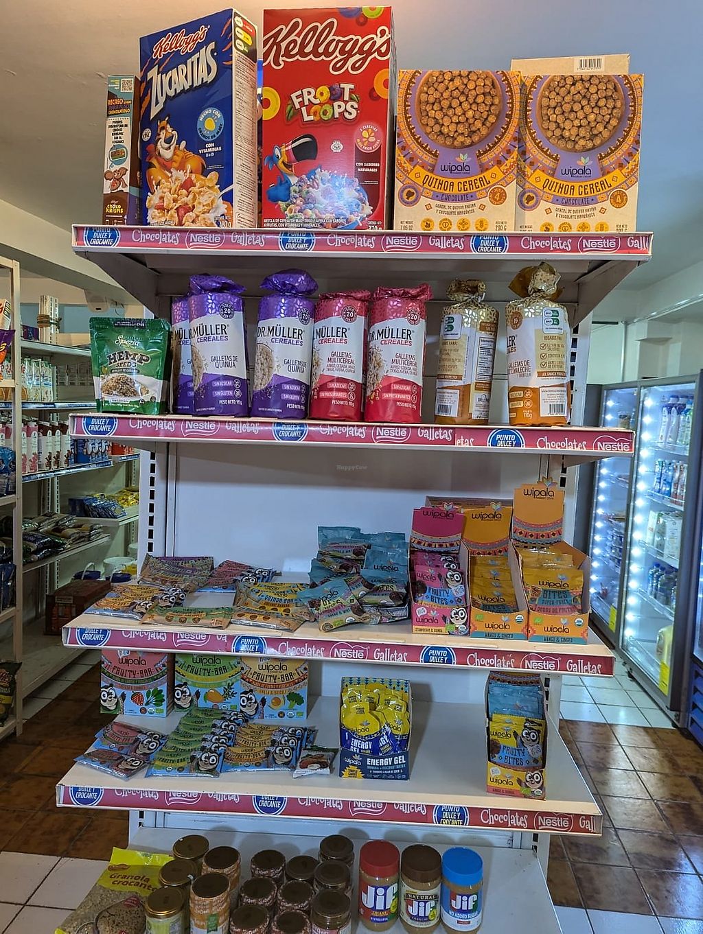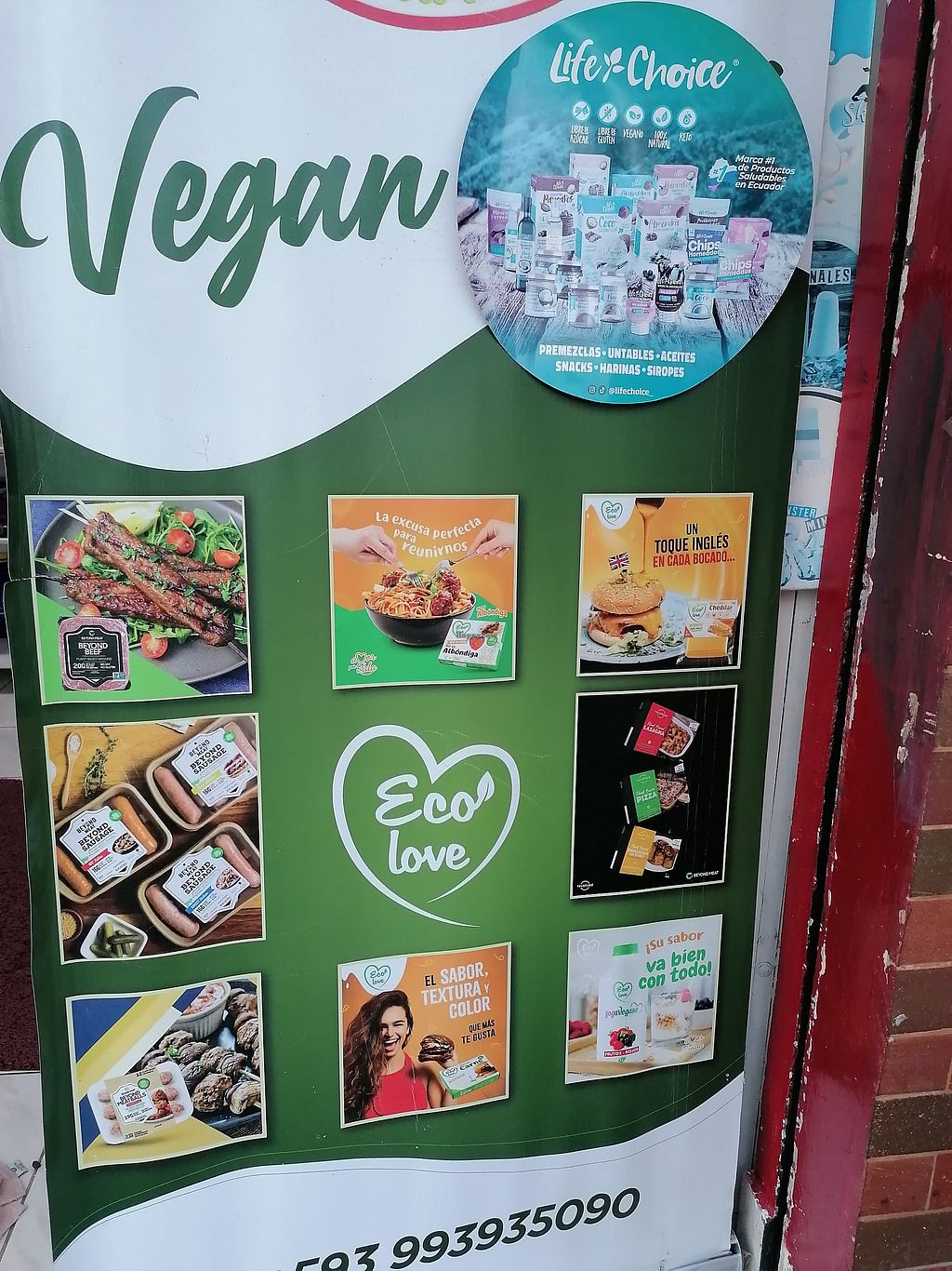 Standard grocery mart with vegan freezer items such as empanadas, chicken-style meat, sausages, vegan cheese, lasagna and pizza. Relocated from Ave 12 de Febrero Open Mon-Fri 7:00am-9:30pm, Sat 7:00am-9:00pm, Sun 7:00am-9:30pm.