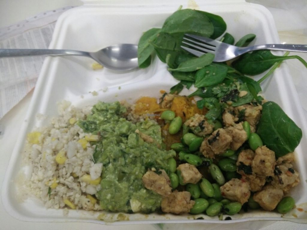 Rice, beet root salad, spinach, sweet potato, tahini sauce & Dahl