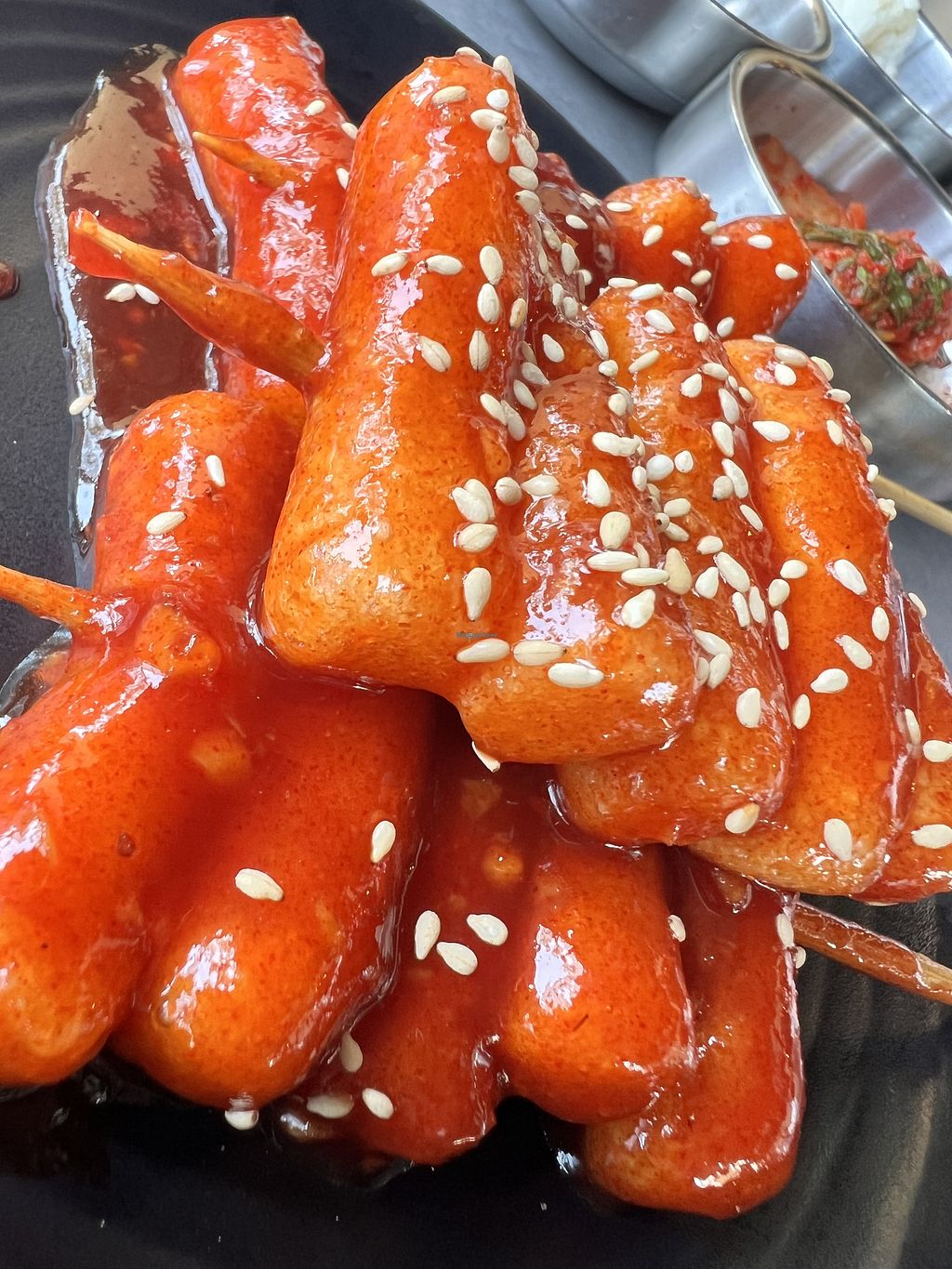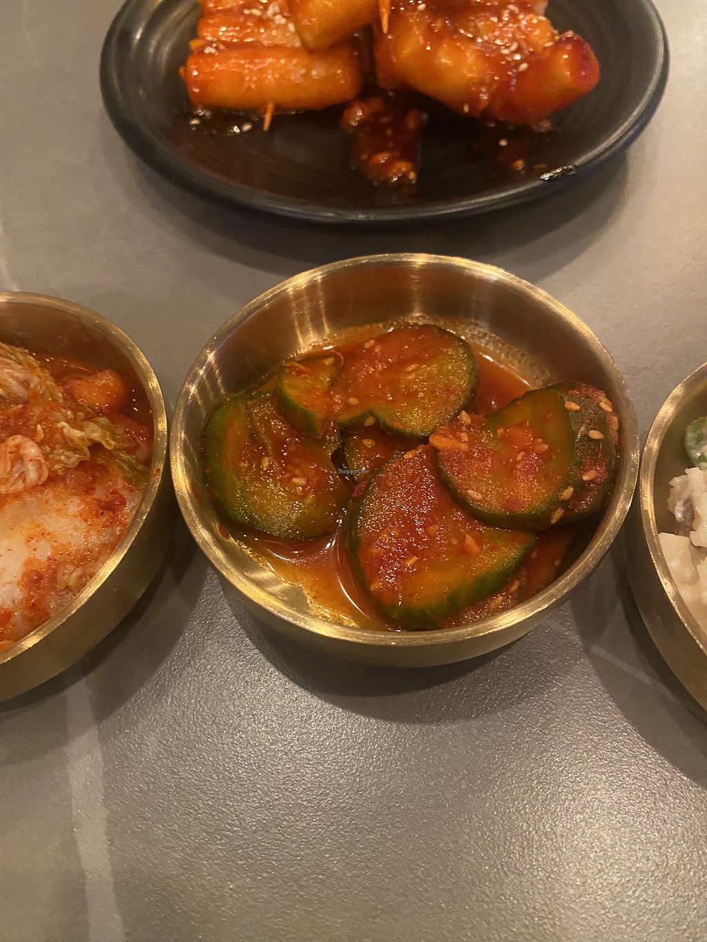 Crispy rice cakes and assorted pickled veg. ***THE KIMCHI IS NOT VEGAN…