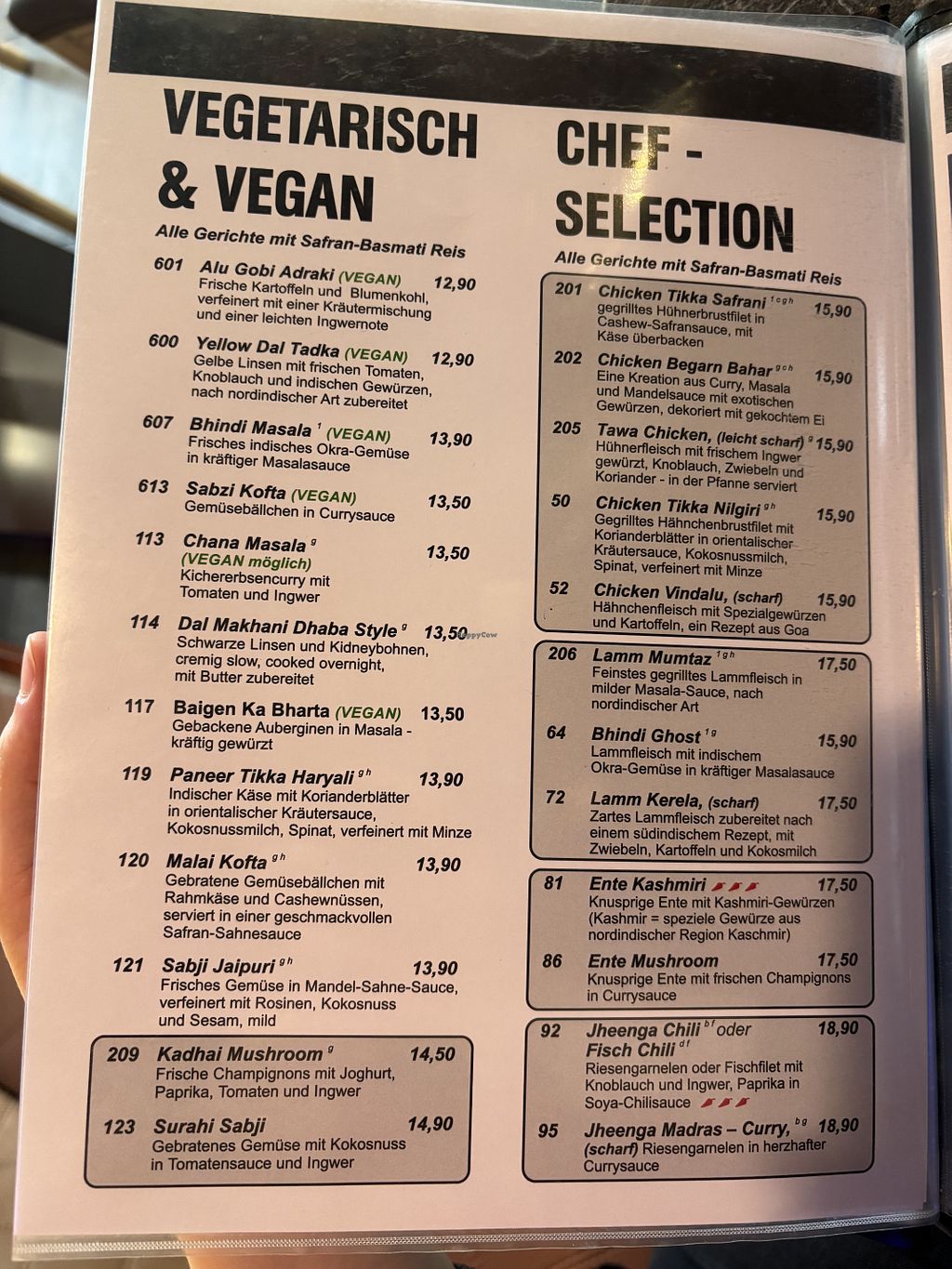 Serves meat, vegan options available. Indian restaurant offering several typical vegan dishes such as aloo gobi, dal, vegan butter "chicken" and vegan "chicken" tikka masala. Vegan choices are clearly labeled. Open Mon-Fri 11:00-14:30, Mon-Sun 17:00-22:00, Sun 11:00-14:30.
