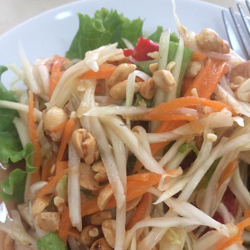 Clean modern Vegetarian restaurant nicely decorated with art. English menu + buffet choices available (not all u can eat). We (a couple) ordered 2 dishes of brown rice+3 choices curry/veggies for 50baht. 2 dishes of papaya salad (delicious, generous portion, healthy) 50baht each. 1 plate summer rolls (stuffed with mung bean sproits , peanuts & other) with delicious dipping soy sauce (large plate 4 rolls) 50baht. Free of charge, They brought us 4 small bowls of broth soup, a plate of mixed local raw greens (Thai isan style), a plate of cooked banana leaves in coconut cream sauce (my favorite dish here of the meal) and some pickled vegetables. Many more options we didn't try. Rice was delicious. We were very full for 250baht. As were were leaving they helped us flag down a songtheow truck to return to the train station (about 24mins away at rush hour 200 baht for 2 people).