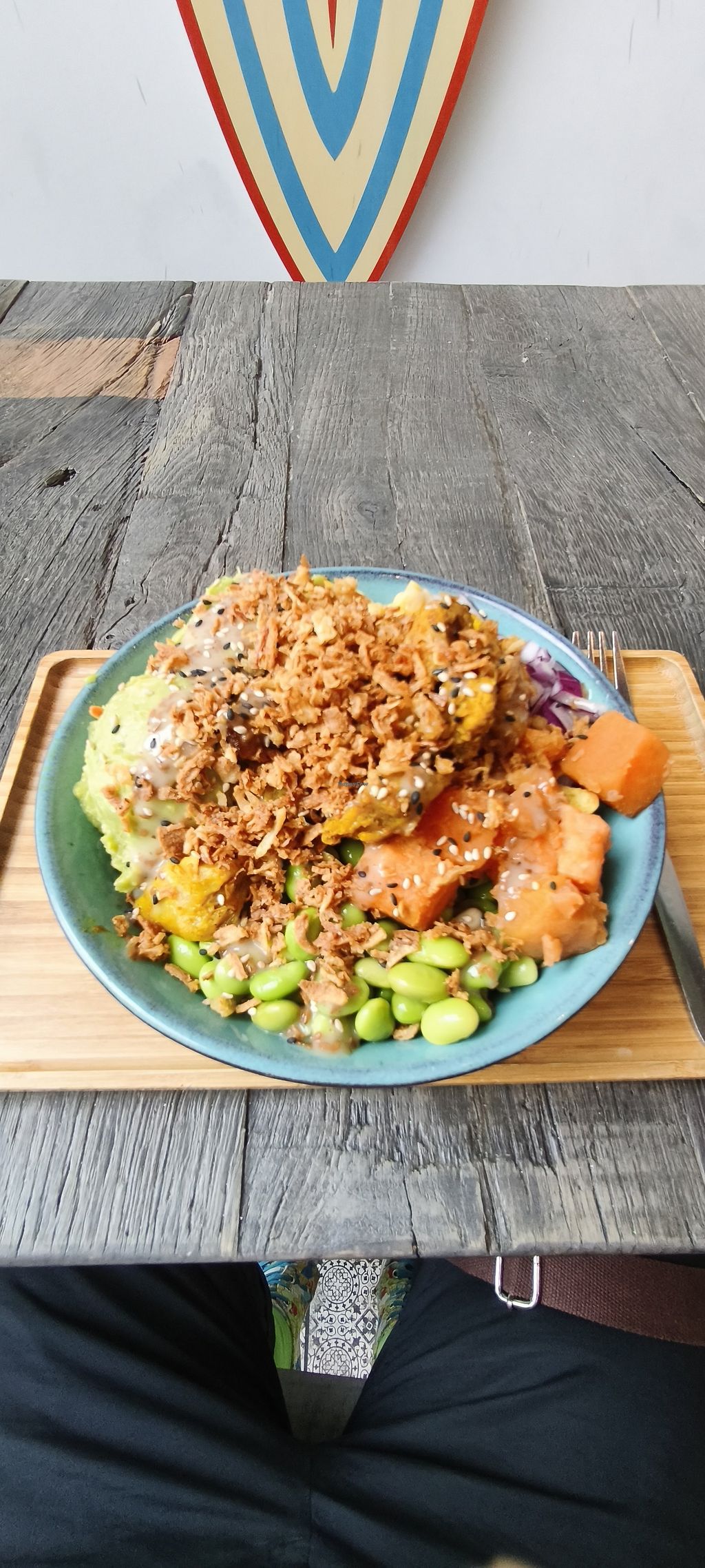 I really like the poké bowl but they haven’t tofu as a protein which was really sad. But they have a vegan chicken alternative. The restaurant had a good atmosphere and you felt like you are in vacation.