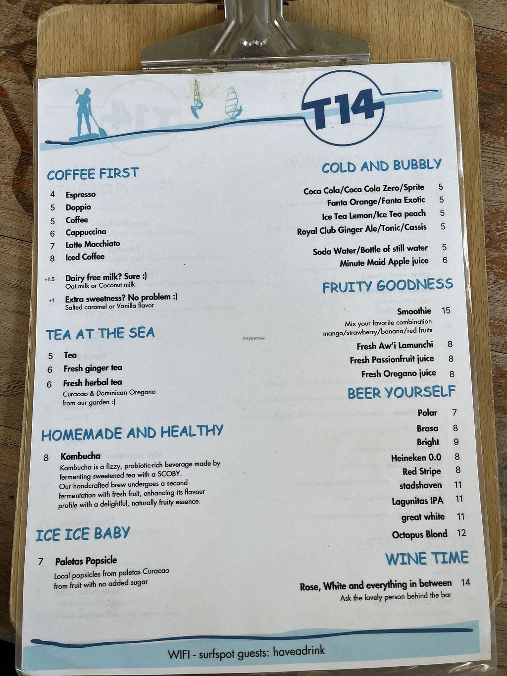 I had a smoothie bowl with oat milk, which I really liked. They also offer milk alternatives for coffee. The seating on the terrace is really nice, wifi is good and you can watch windsurfers while eating.