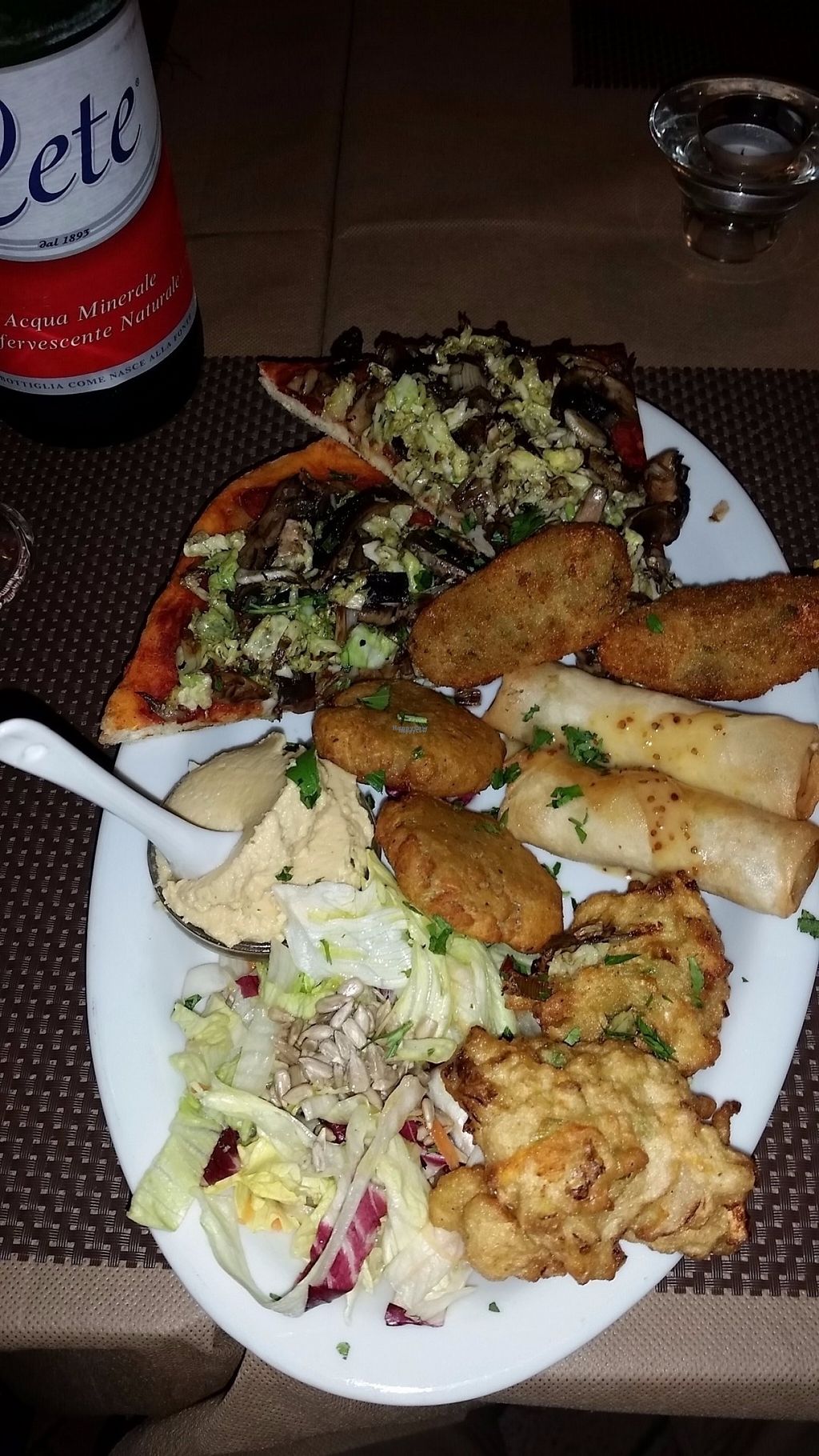 After we discussed the possibilities with the cook, we ordered a mixed plate with different ingredients following our wishes. I can tell you it was very delicious and that (as a sophisticated hobby cook) I never thought it would be possible to create that wonderful and perfect (vegan) food. Afterwards we had to order another plate. As desert we had a Tiramisu (highly recommendable) and a Mousse de Pistacchia, which was also very good.