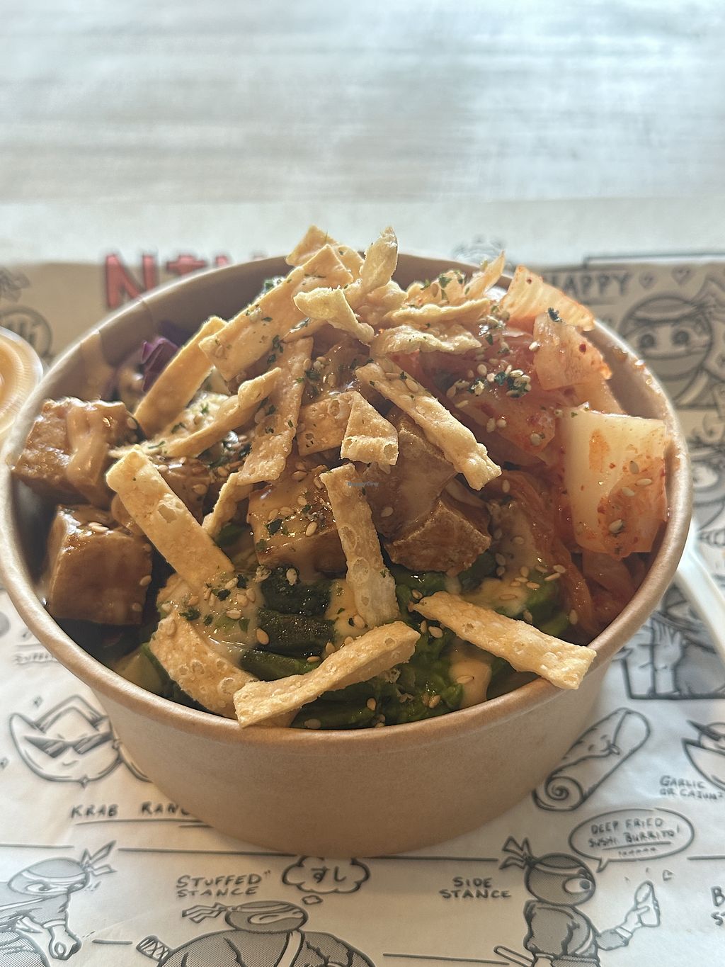 Love building a sushi bowl or sushi burrito here. Ingredients are fresh, sauces that are vegan are clearly marked. For a period of time they had a vegan chick’n option but they took it away, so the tofu will do for now. But being back more vegan protein options!