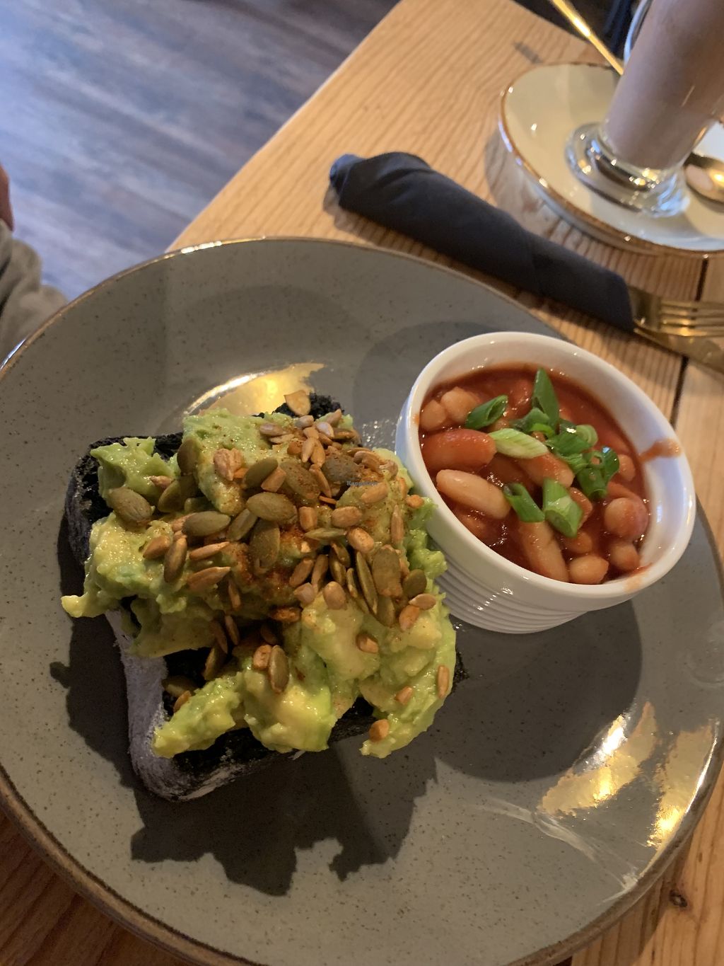 Really lovely small cafe which does brunch and lunch options, hot and cold drinks and cakes! Had the avocado, beans and tofu on toast - all really tasty!