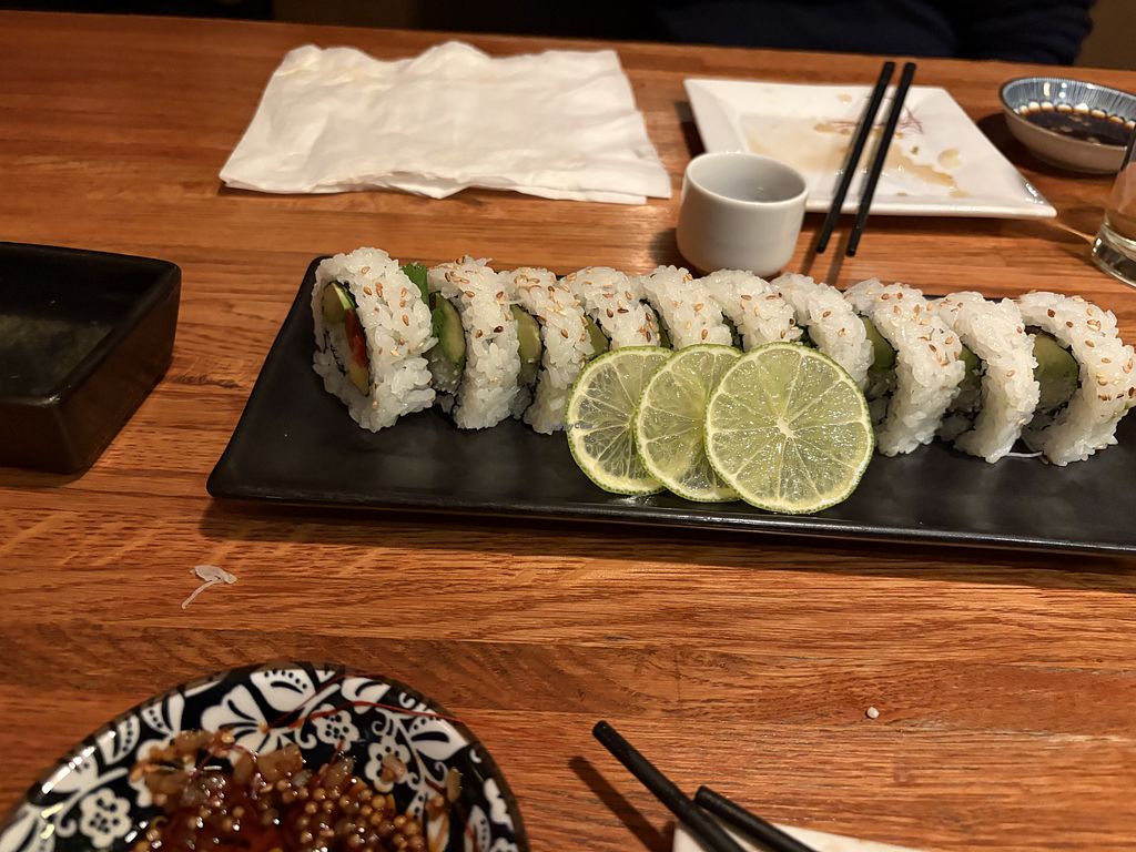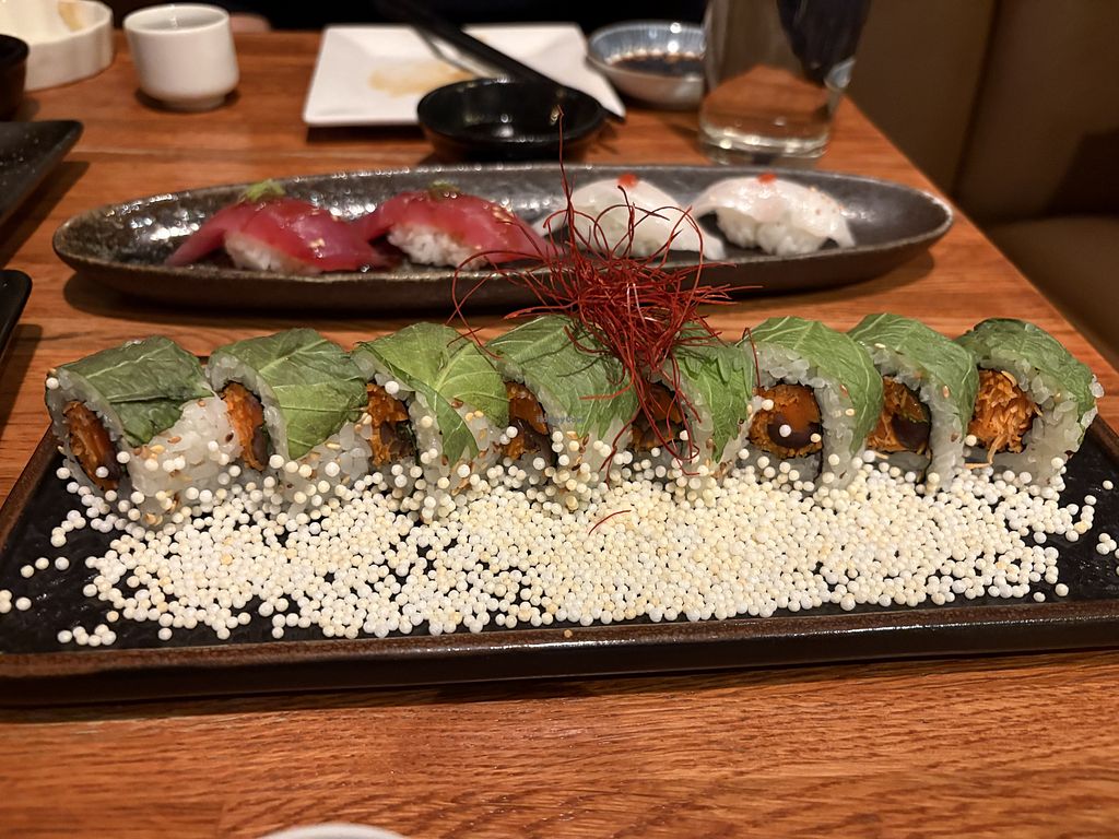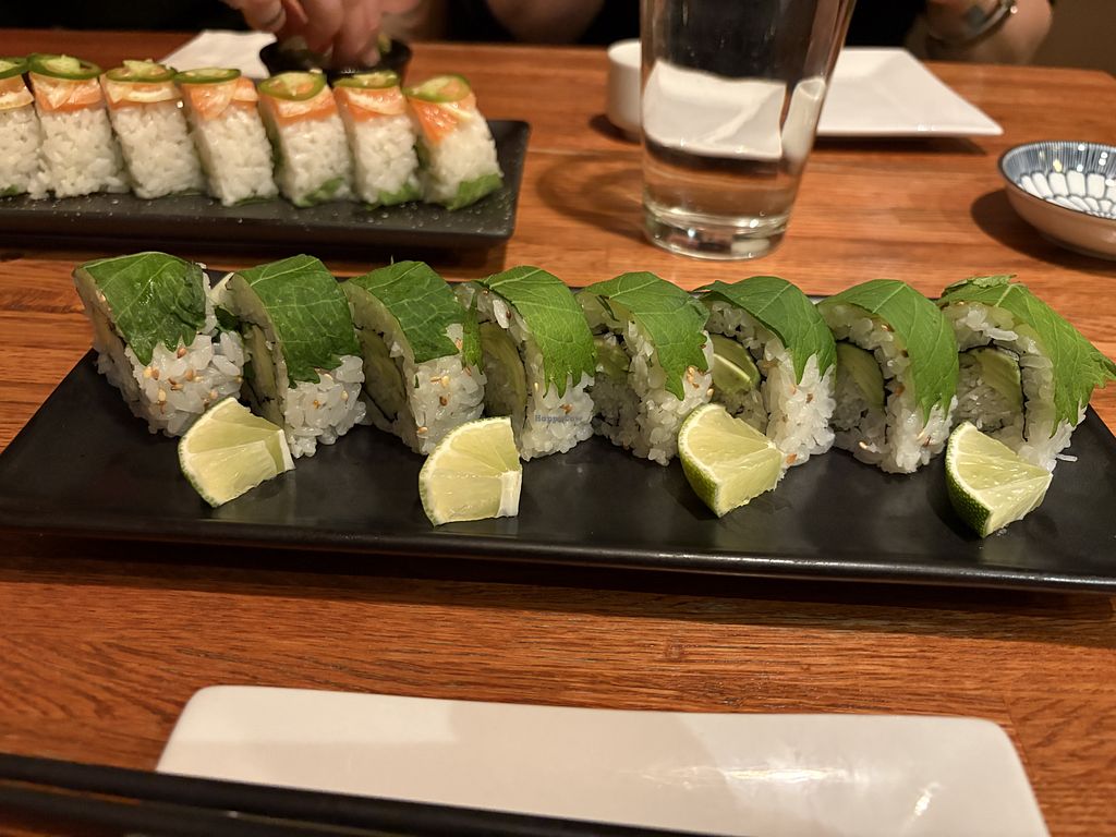 Vegan nigiri in so many different options!! This is avocado, Oshinko, …
