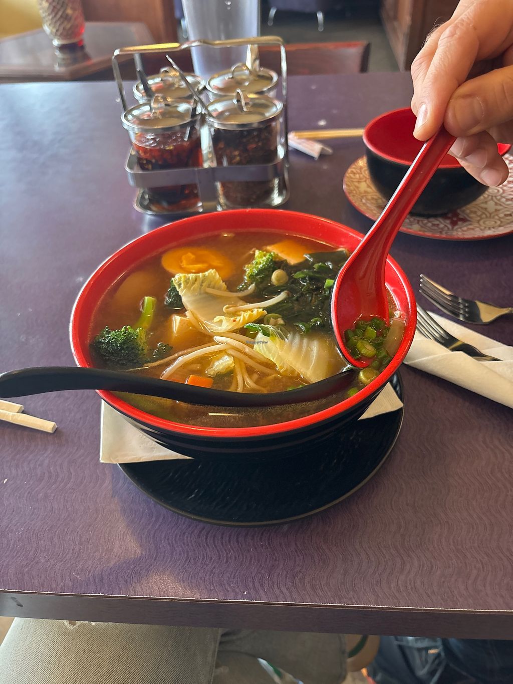 This is a great place, really good staff, tons of vegan options. Also clearly, a very popular local spot, it was crowded but the staff did a great job taking care of everyone. We enjoyed the vegan sushi and the cooked vegetables with various sauces (garlic sauce yum).We were actually a little disappointed in the Ramen, the kids liked it, but we thought it was rather bland. But at least it’s a vegan option!