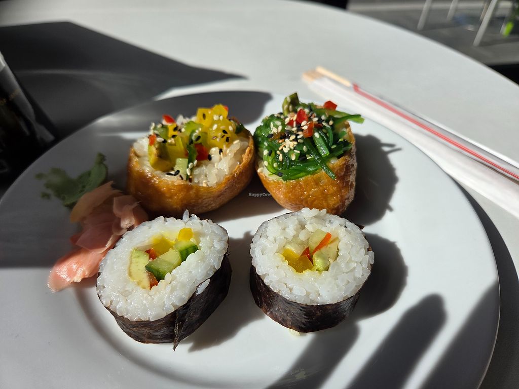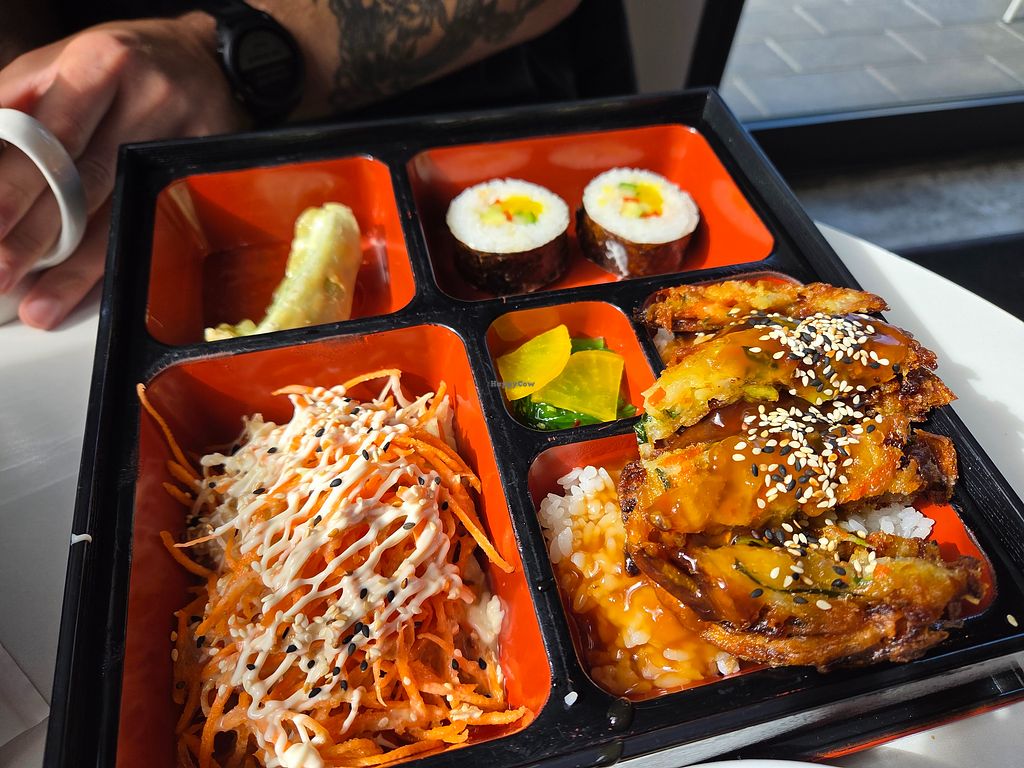 There are a good number of options here, including vegan sushis (tofu pocket, vegetable, and seaweed), bento box which uses a vegan mayo, donburi, and curry.