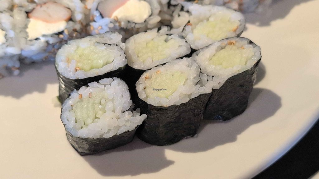 I'm thankful that they had a few vegan options which you'll find at many sushi restaurants: avocado rolls and cucumber rolls. The avocado rolls are quite good. They also have a veggie combo roll which was absolutely delicious but so large that it didn't stay together well.