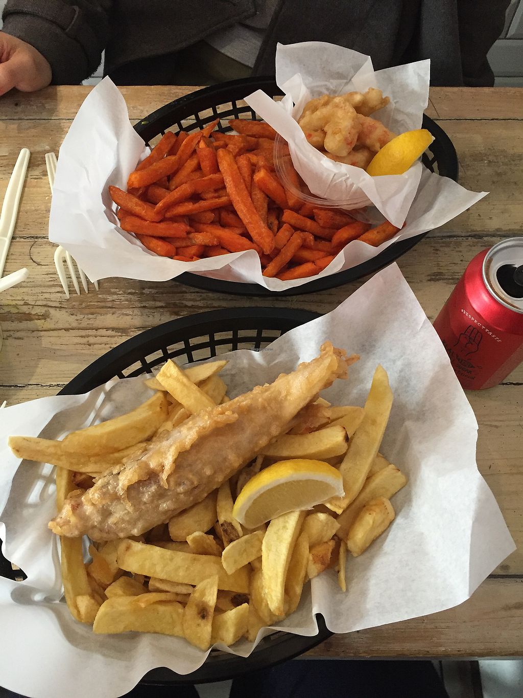 I was very excited about the concept but they got it all wrong. We tried both the fish and the scampi. No fish or sea flavours at all. No seasoning. Chips and fries are good and so are the sauces. Good friendly staff.