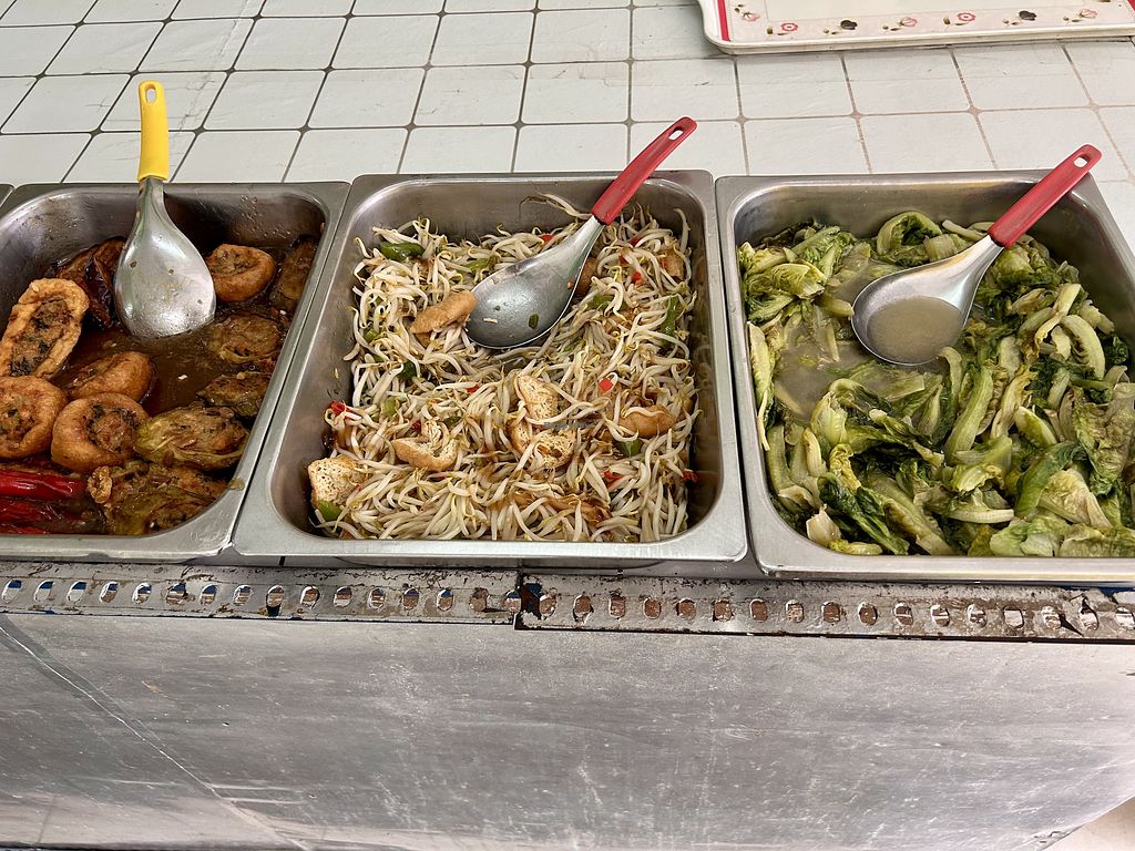 Really good example of Chinese veggie buffet. There were about eight dishes on offer - staff provide a (huge) portion of rice and you can then help yourself. I think I tried everything except the fritters, and it was all good, but especially the sweet and sour and the okra! Drinking water is provided and they gave us free bananas for dessert. I think they may also have noodle soup and cooked to order options - there were menus on the wall.