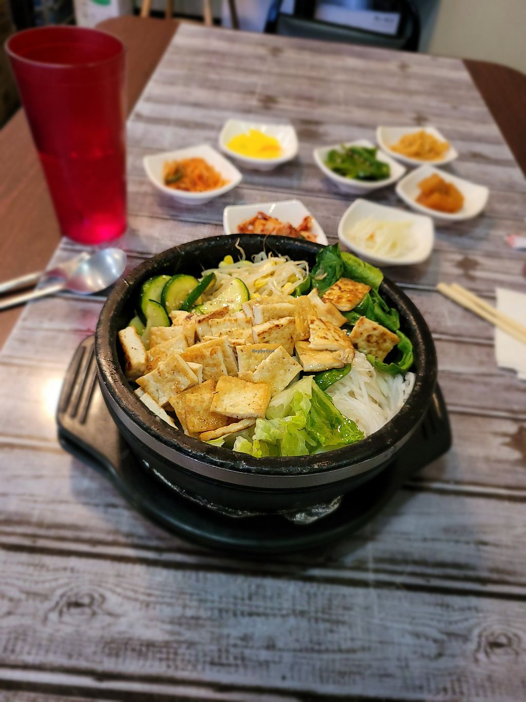 Bibimbap with Tofu in a hot pot. Excellent!