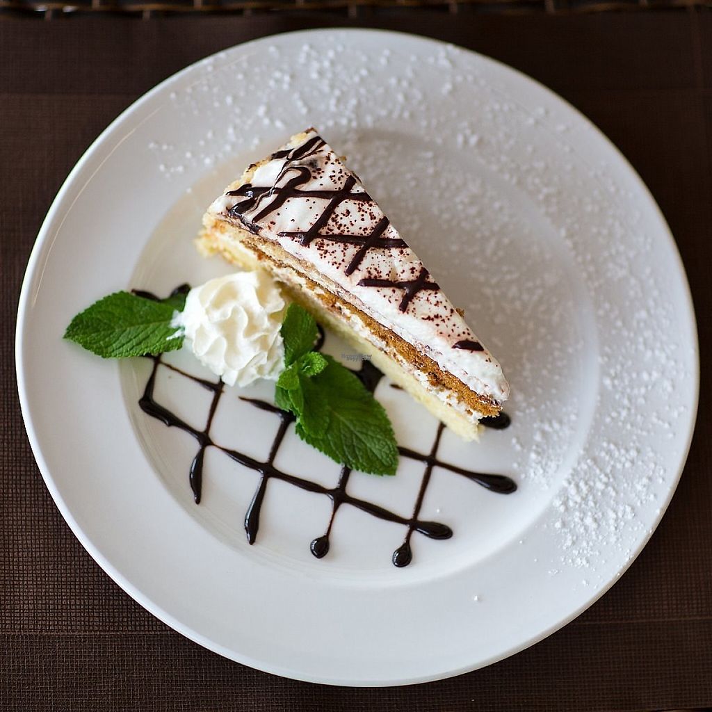 Vegan cake for dessert.