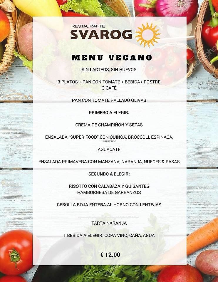 Vegan menu