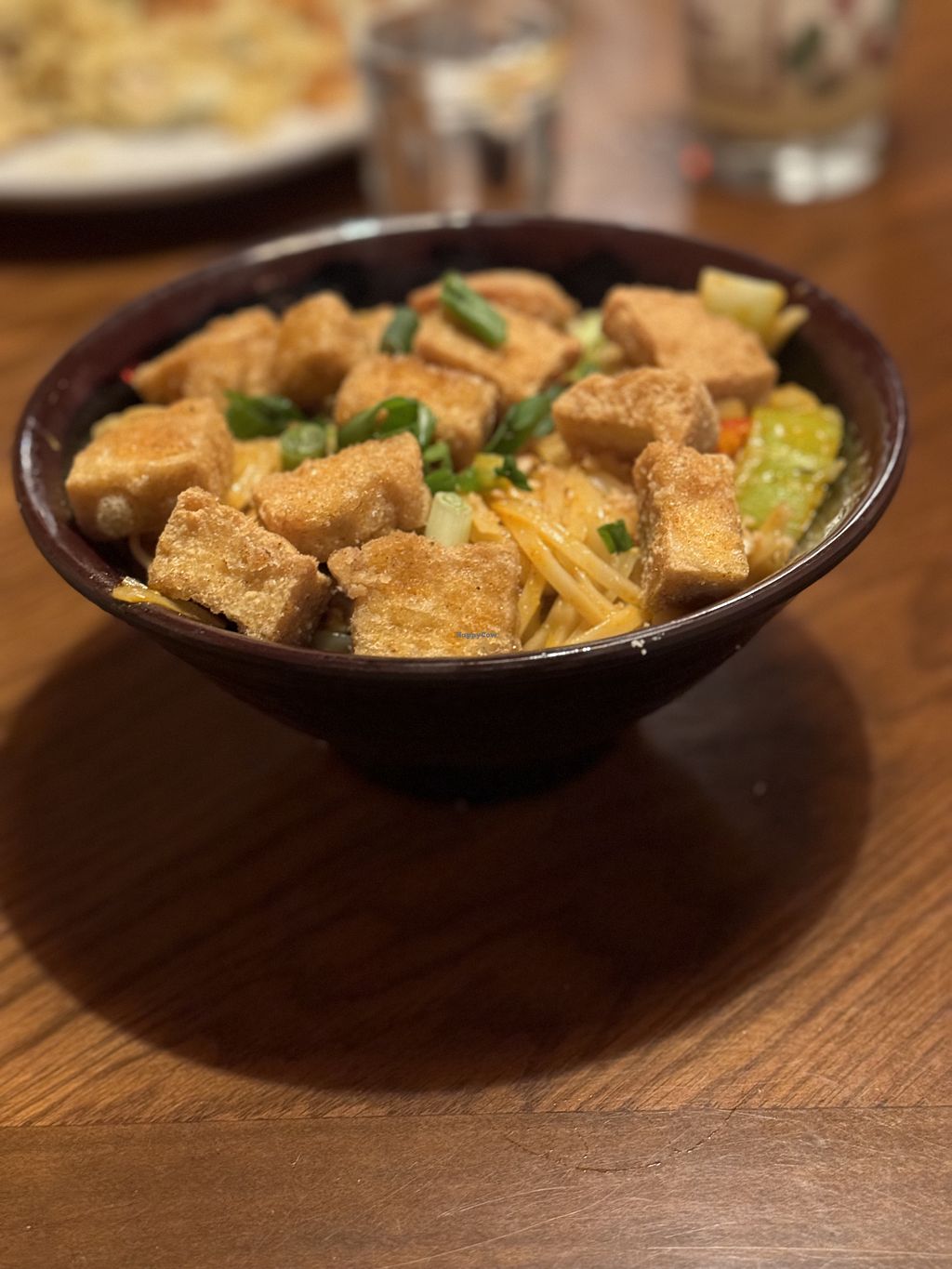 Went for $5 Mai Tai Monday. The drinks were nearly undrinkable, they were so strong. Ordered a frozen drink and it was still terribly strong. They offer no vegan appetizers, but two entrees. I got the noodle bowl which was just OK. The portion size was really nice, but it was flavorless, something that reminded me of my own cooking.