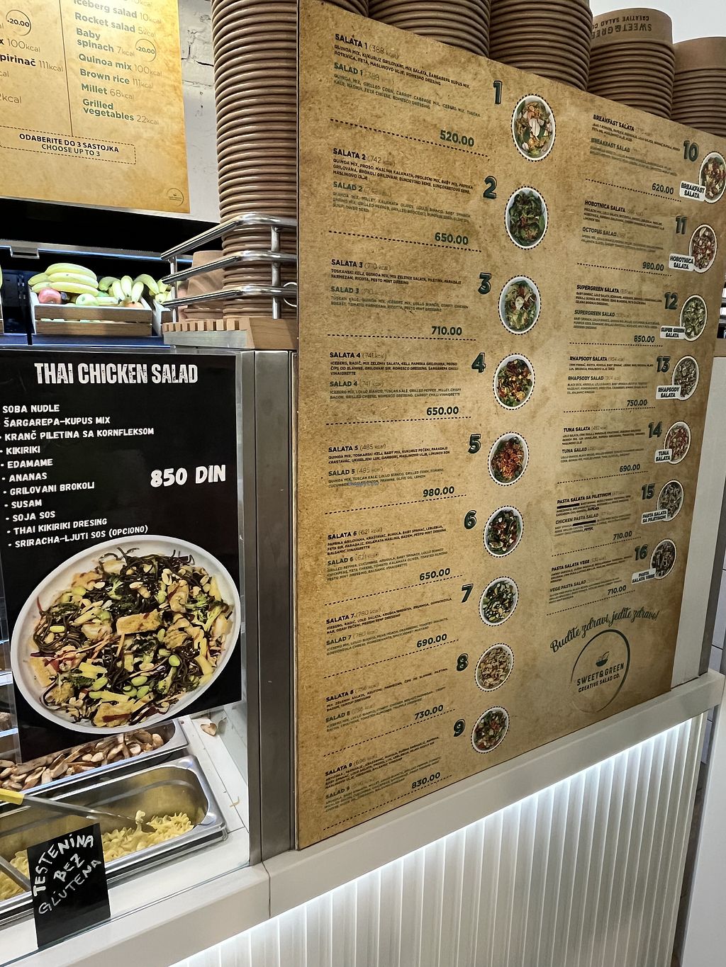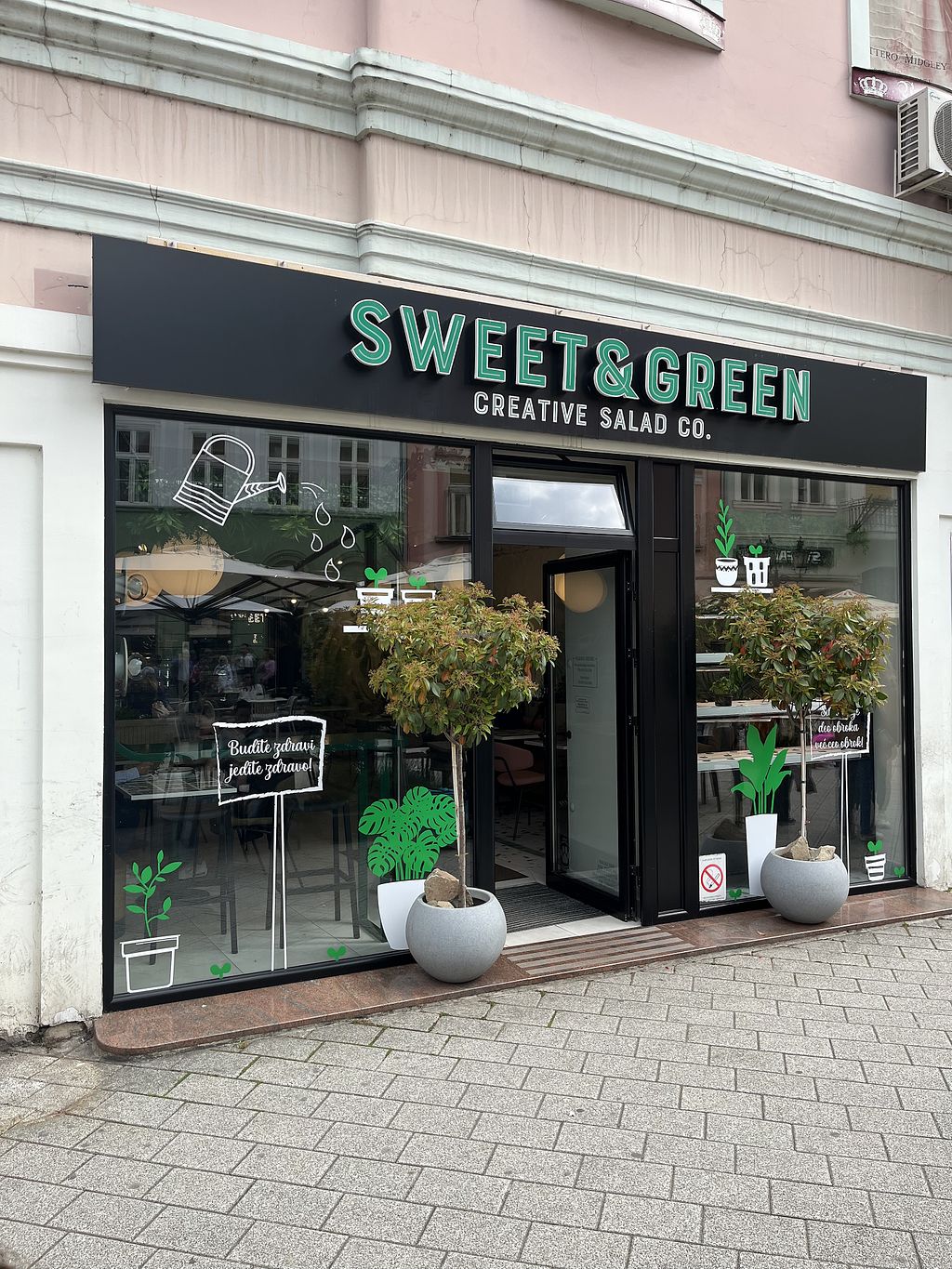 Serves meat, vegan options available. Salad restaurant with a variety of signature salads and the option to build a custom salad. Vegan protein options include chickpeas and falafel. Offers indoor eating, outdoor terrace eating, and takeaway. Open Mon-Sat 8:00am-10:30pm, Sun 10:00am-10:30pm.