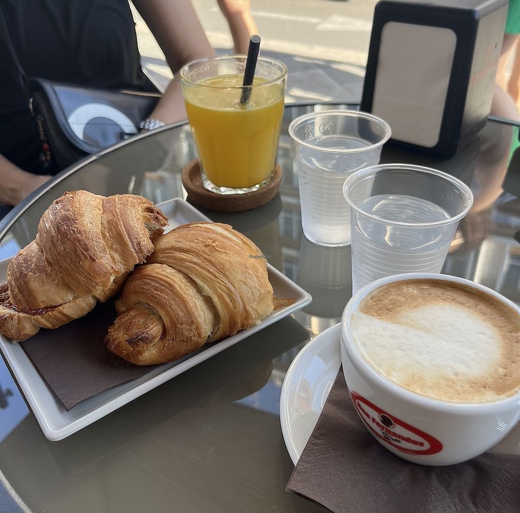 vegan cornettos with strawberry jam filling, cappucino with soy milk a…