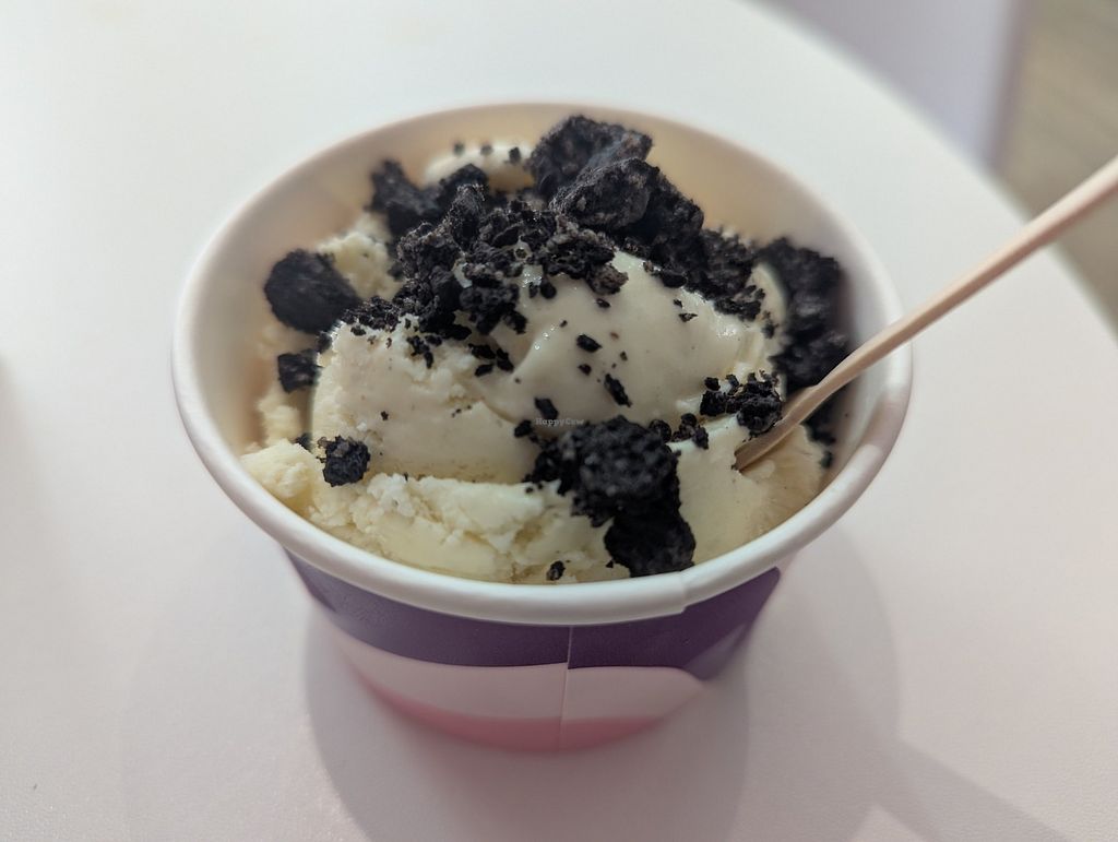 I had a vegan vanilla ice cream with Oreo sprinkles. There was also a trillionaire's tart available, and I imagine the sorbets are probably vegan too. Really friendly guy on the counter!