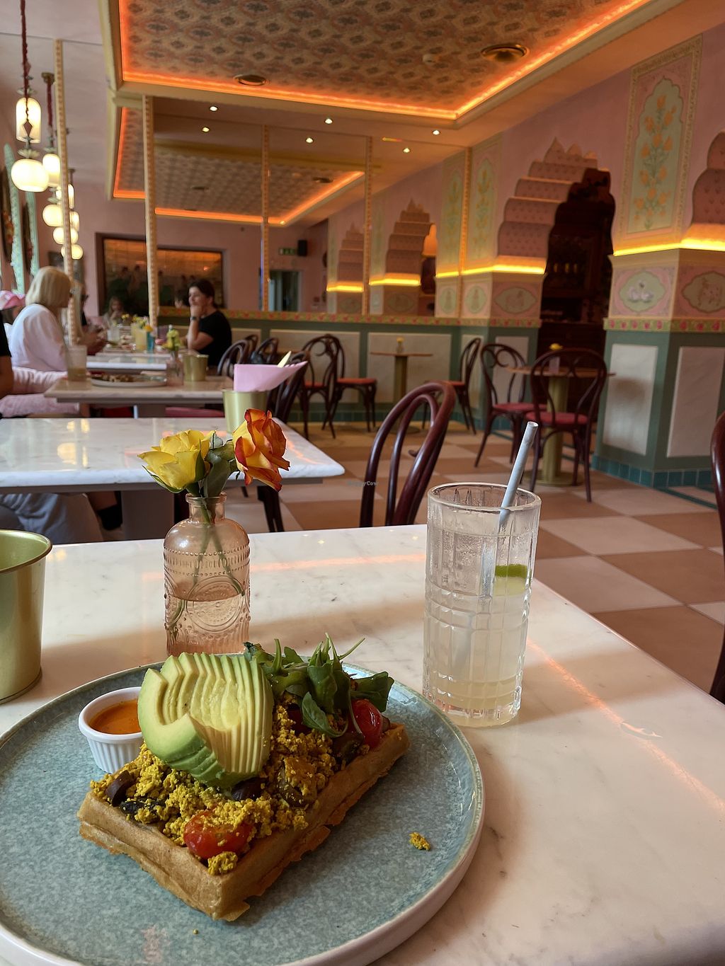 Very hard to describe the interior - very pink, Indian influenced and eclectic background music. We visited twice at lunchtime and the food was very good. Soup the first day and avocado on homemade toast the second. Highly recommended.