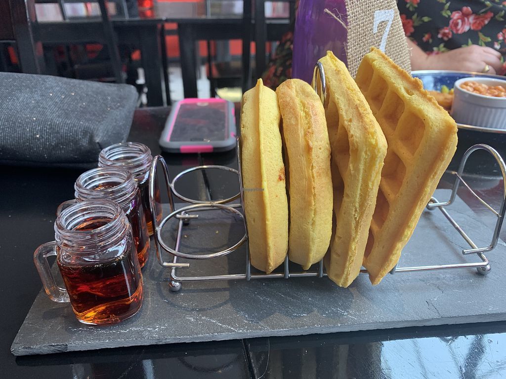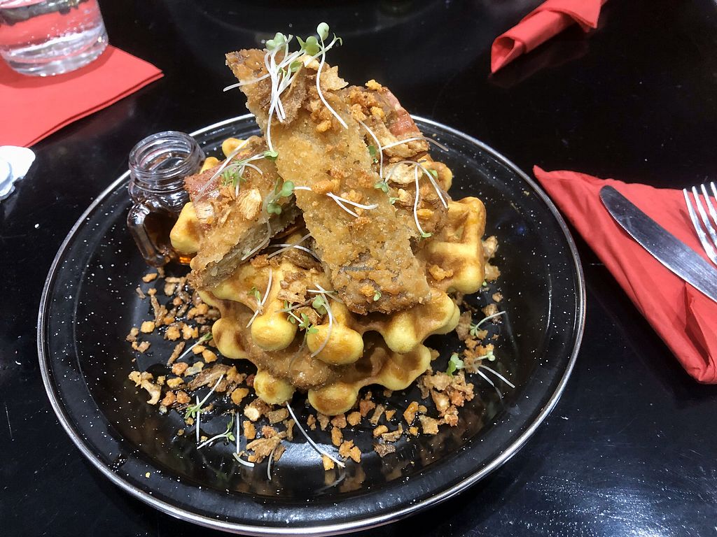 Serves meat, vegan options available. Offers a vegan section in the menu. Includes an ultimate vegan breakfast, breakfast stack, classic burger, Mexican enchiladas, bunny chow and waffle dog. Confirmed closed, Jun 2020.