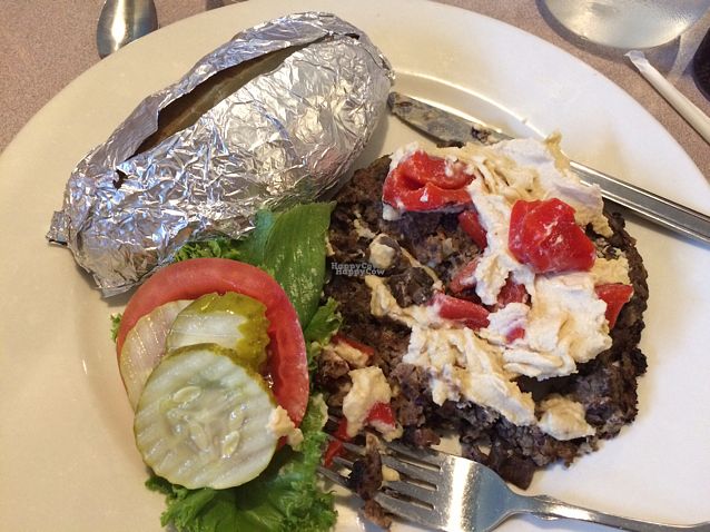 One of the most friendly places I've ever eaten at. I had driven by this place a couple of times and looked on their website to see what they had. I saw that they vegan friendly so I decided to go with my family. Although they only have a vegetarian section of their menu, much of this is vegan as is or can be made so. I had the stuffed sweet potato which I highly recommend. The waitress gave me a free bowl of soup because it was vegan and she wanted me to try it, it was Sweet Potato Chipotle and was absolutely delicious. I highly recommend stopping by especially if you have a mixed veg and non veg party.