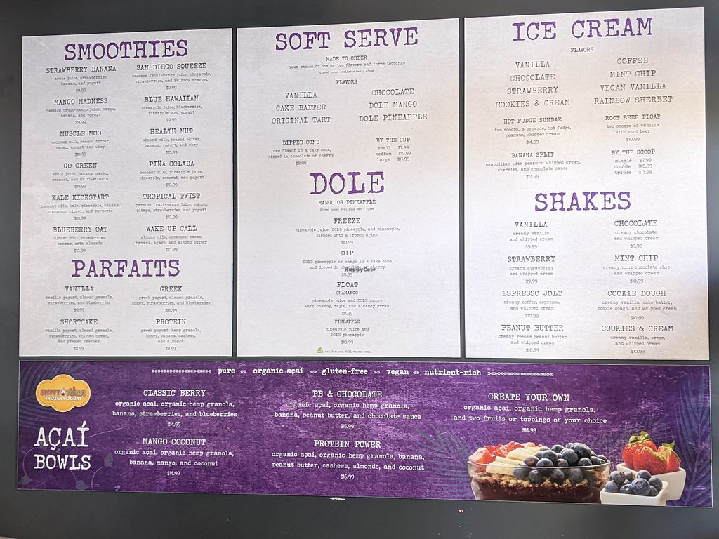 Small ice cream parlor offering vegan acai bowls, smoothies, coffee with oat milk, vanilla ice cream and Dole whip soft serve. Open Mon-Thu 7:00am-9:00pm, Fri-Sat 7:00am-10:00pm, Sun 7:00am-9:00pm.