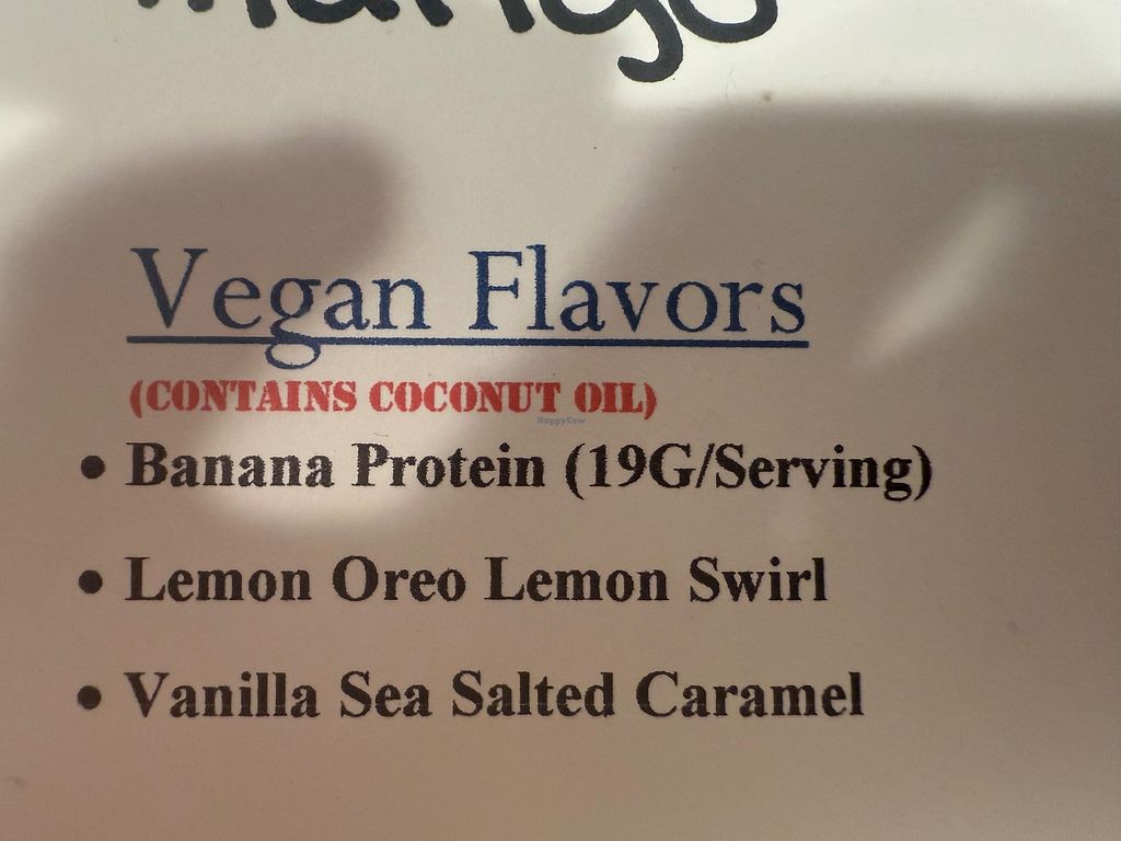 Staff was friendly and the ice cream was delicious. Was able to get a sundae with all three vegan flavors. Banana protein flavor was my favorite.