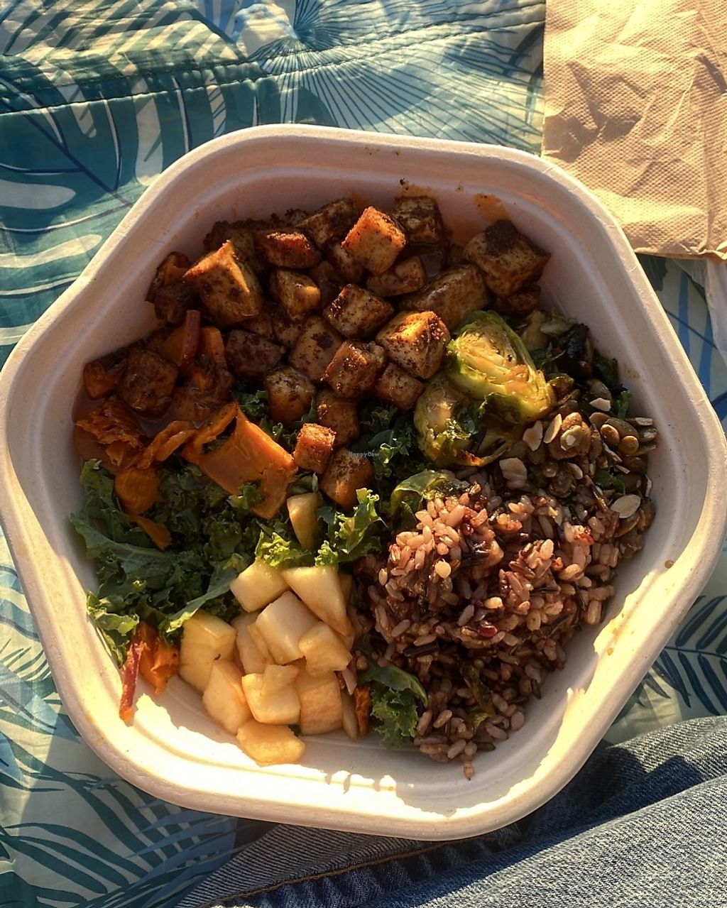 Complex and beautiful flavours. I got the Autumn harvest bowl (and substituted chicken for tofu and feta for pepita seeds). Brussel sprouts are so good. I would give them 5 stars if I could!