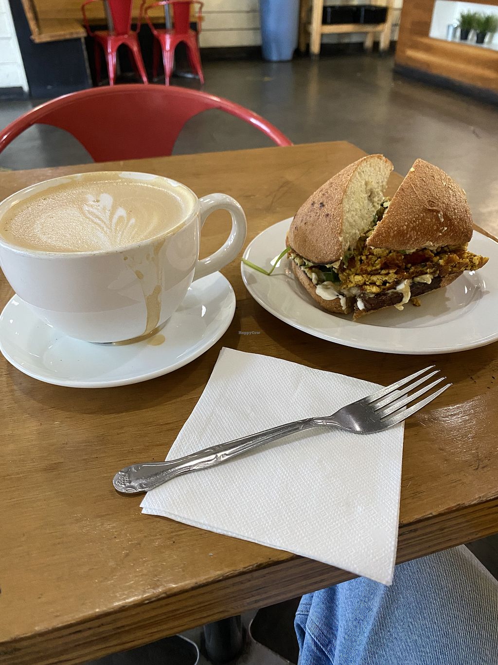 Rose latte and breakfast Sammie