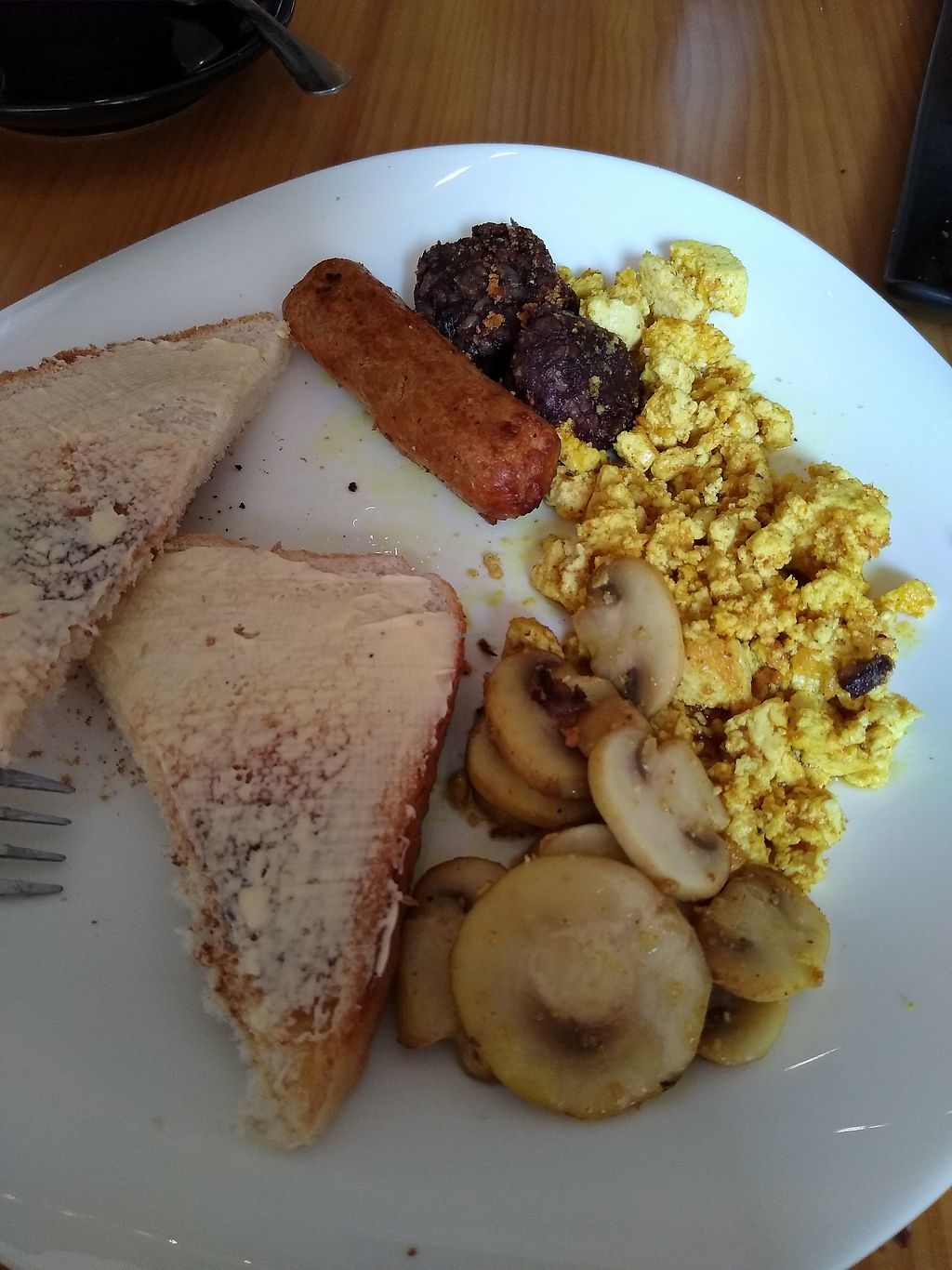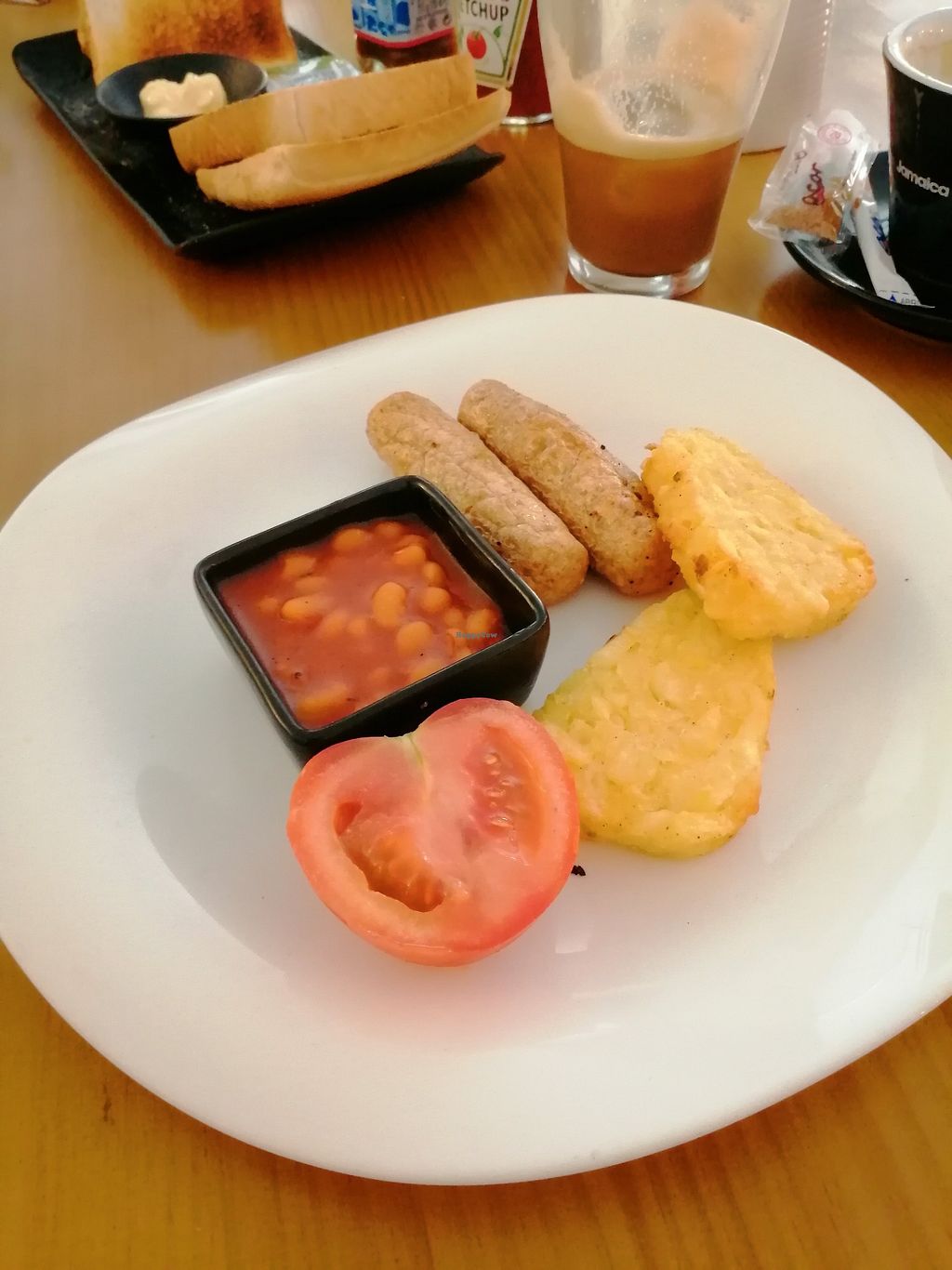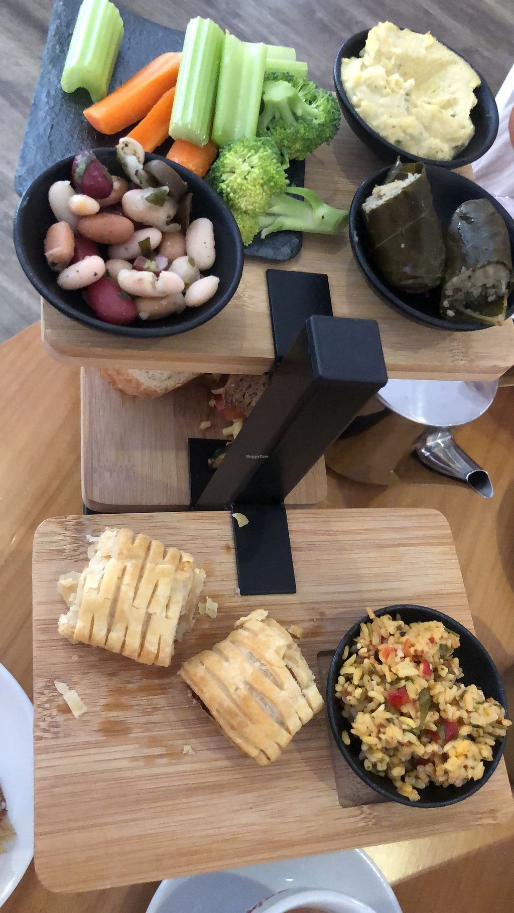 mix bean salad, homemade humus, rice salad, veg and vegan sausage roll…