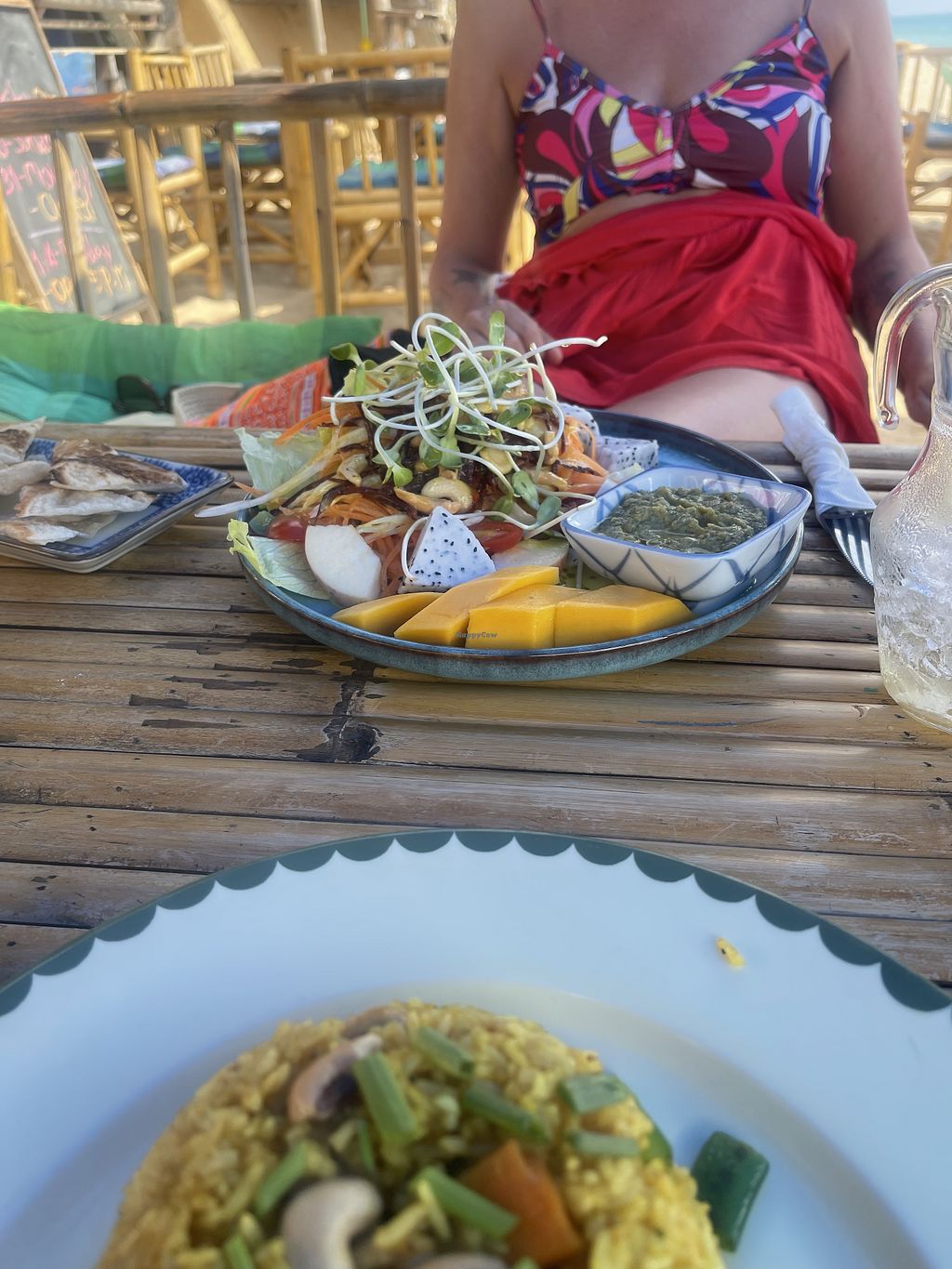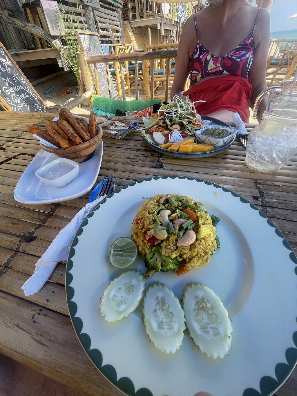 Really fresh and delicious food. Vegan and vege options. Papaya salad was particularly tasty😄Right on the beach.