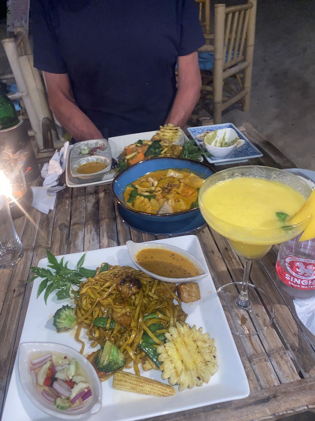 This is our fav restaurant so far after 4 months in SE Asia. We went 3 times in a row. Beautiful setting on the beach to watch amazing sunsets, great music, chilled atmosphere. The menu is small and thoughtful, the food delicious, especially the sweet soul Lanta salad and penang curry with tempeh. The cocktails were great. Kai the owner was super friendly as were all the staff. Couldn’t recommend this place more!