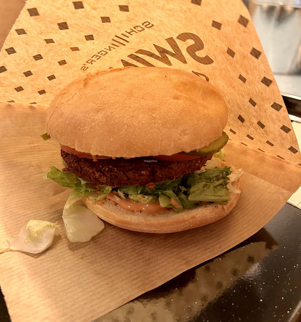 Small chain of vegan eateries by the Schillingers. Menu specializes in burgers and also offers wraps, salads, sides, sodas, cakes and sweets. Uses CO2-neutral and bio-degradable ware. Swing music played in the background. No phone; contact online. Reported closed March 2024.
