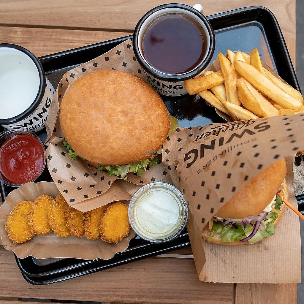 Swing Kitchen is an all vegan restaurant who serves delicious burgers, plain & loaded fries, chili cheese bites & nuggets, lovely desserts & more :-)