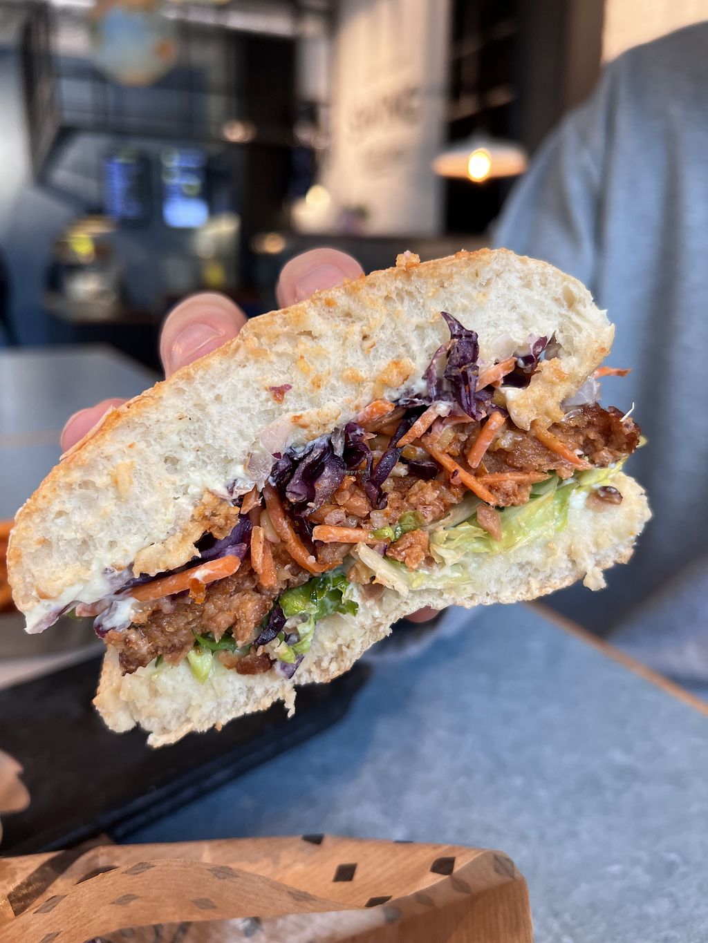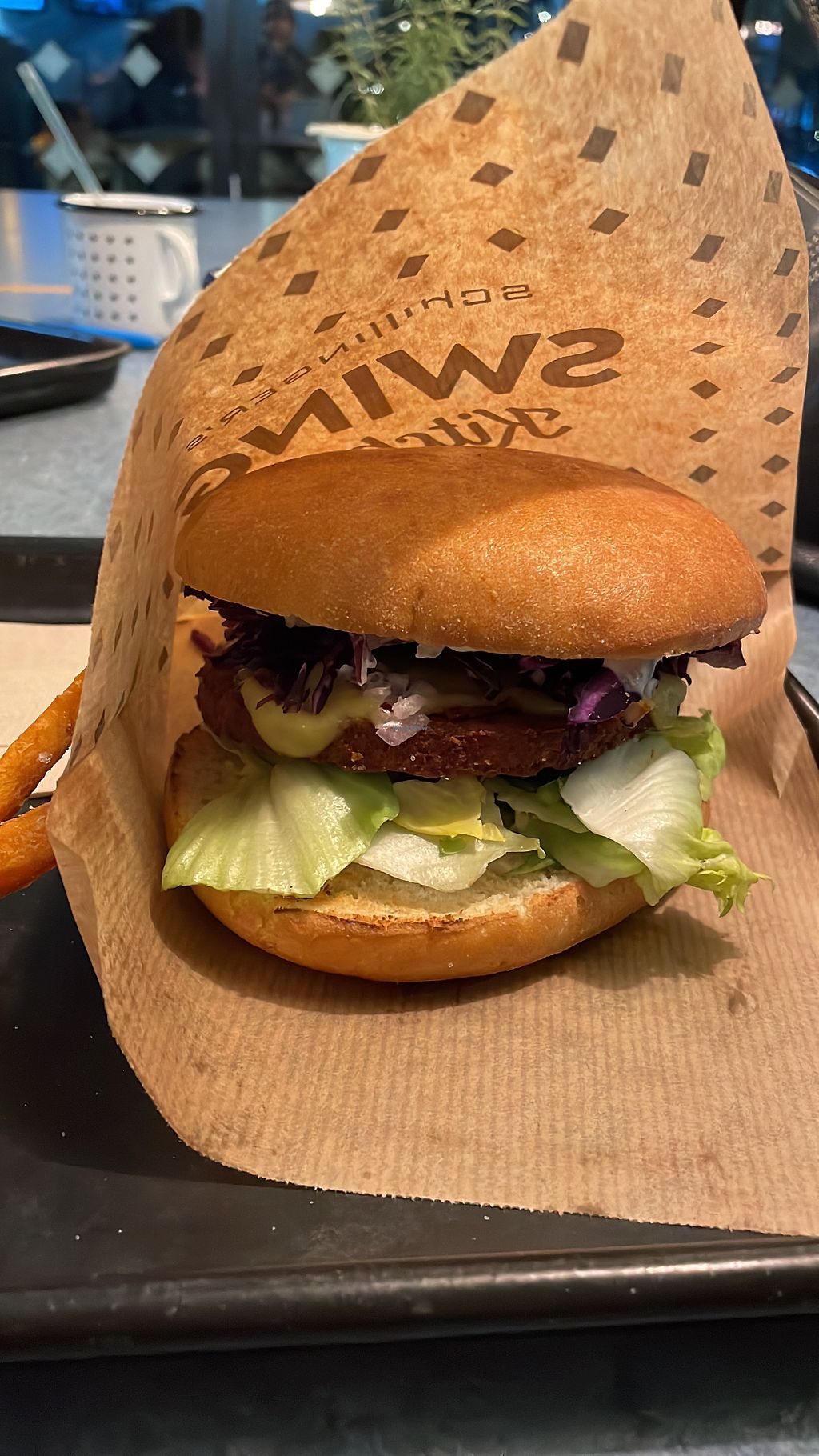 They have a great vibe at the restaurant and the burgers are great, the buns are a little dense compared to squishy spongy burger buns, but they are very tasty and filling ❤️ we had the like meat schnitzel burgers and fries