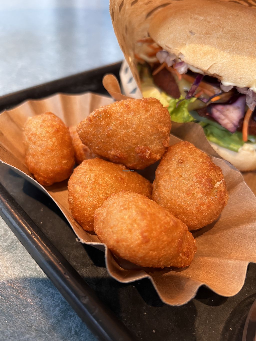 A cool fast food restaurant with a nice vibe, and we ordered the Vienna Burger, the Cheeseburger combo deal (included a refillable drink fries, which we upgraded to sweet potato), Chilli Cheese Bites and Golden Nuggets.
