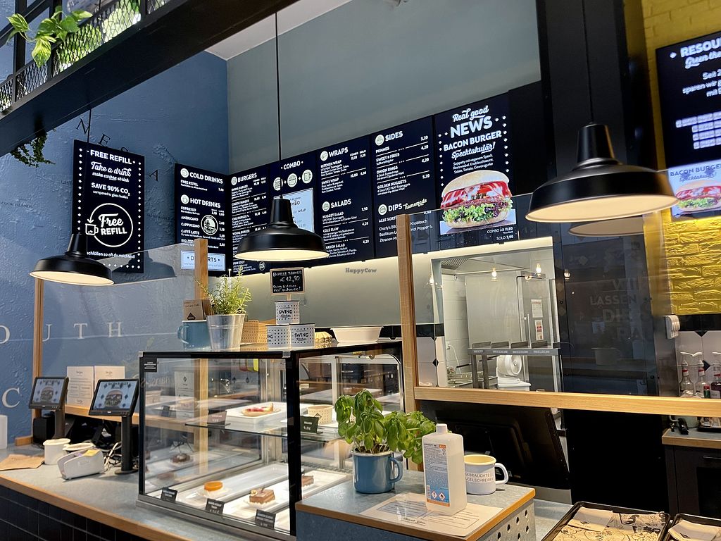 Small chain of vegan eateries by the Schillingers. Menu specializes in burgers and also offers wraps, salads, sides, sodas, cakes and sweets. Uses CO2-neutral and bio-degradable ware. Swing music played in the background. No phone; contact online. Reported closed December 2023.