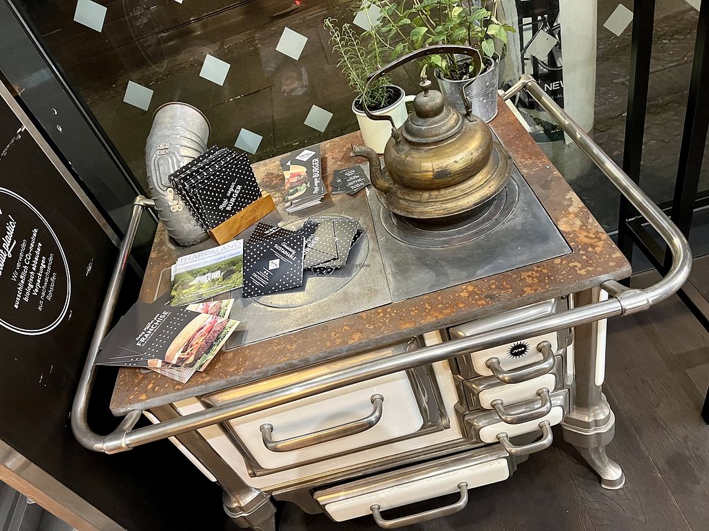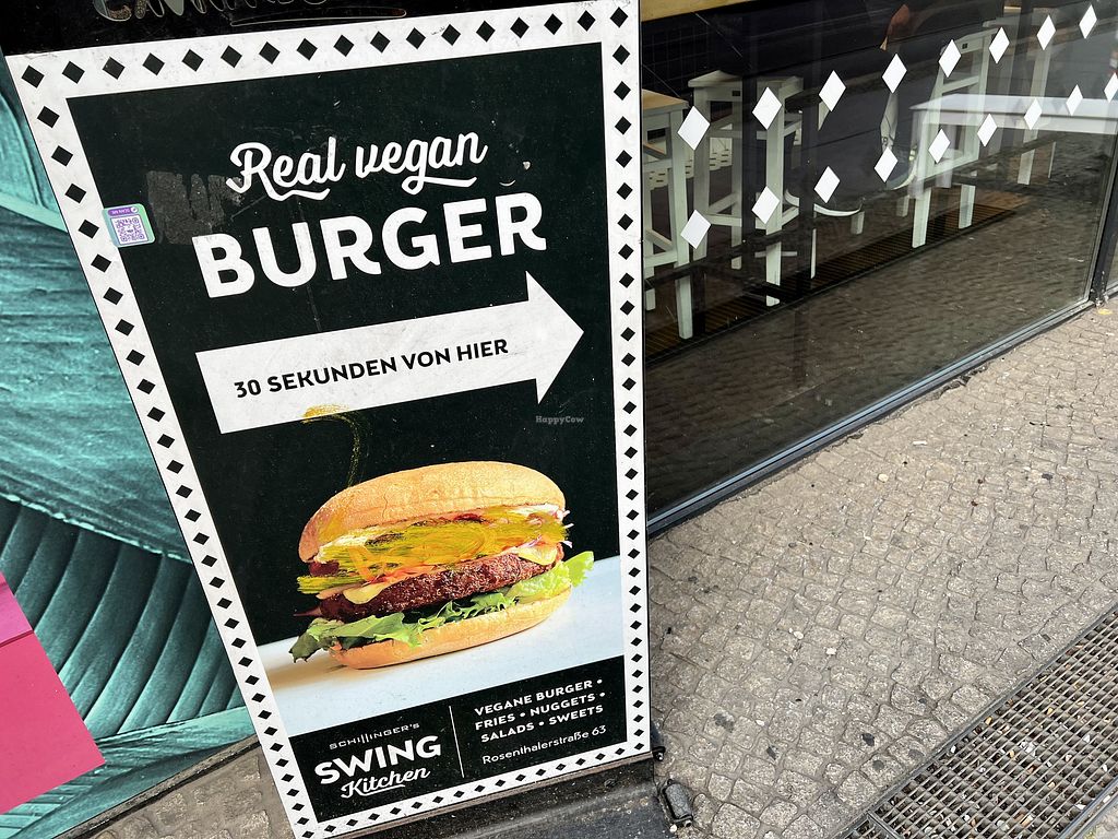 Friendly staff, in tourist part of town close ro Hackescher Markt, tram and local train stations close by, also many tourist 'attractions'. Inside, around 40 seats, roughly the same outside. Fast food including tiramisu, surprise 'lemonade' (pomegranate, sweet woodruff...). Throw-away wooden cutlery, so if you have, bring washable cutlery. Actual swing music in background 💃🏼. Fries are good, hamburgers are not giant sized, so you can actually eat them.