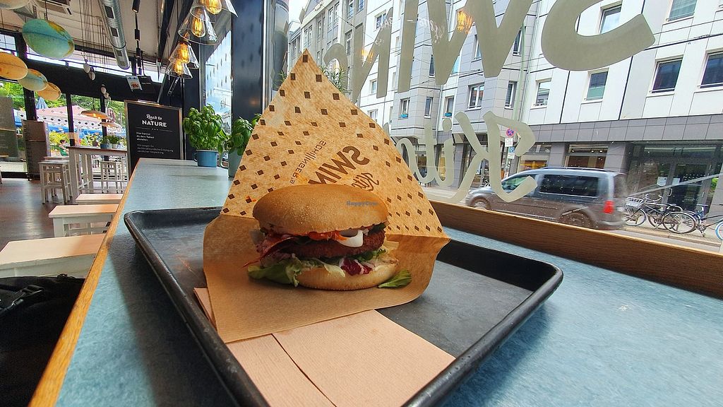 Small chain of vegan eateries by the Schillingers. Menu specializes in burgers and also offers wraps, salads, sides, sodas, cakes and sweets. Uses CO2-neutral and bio-degradable ware. Swing music played in the background. No phone; contact online. Reported closed December 2023.