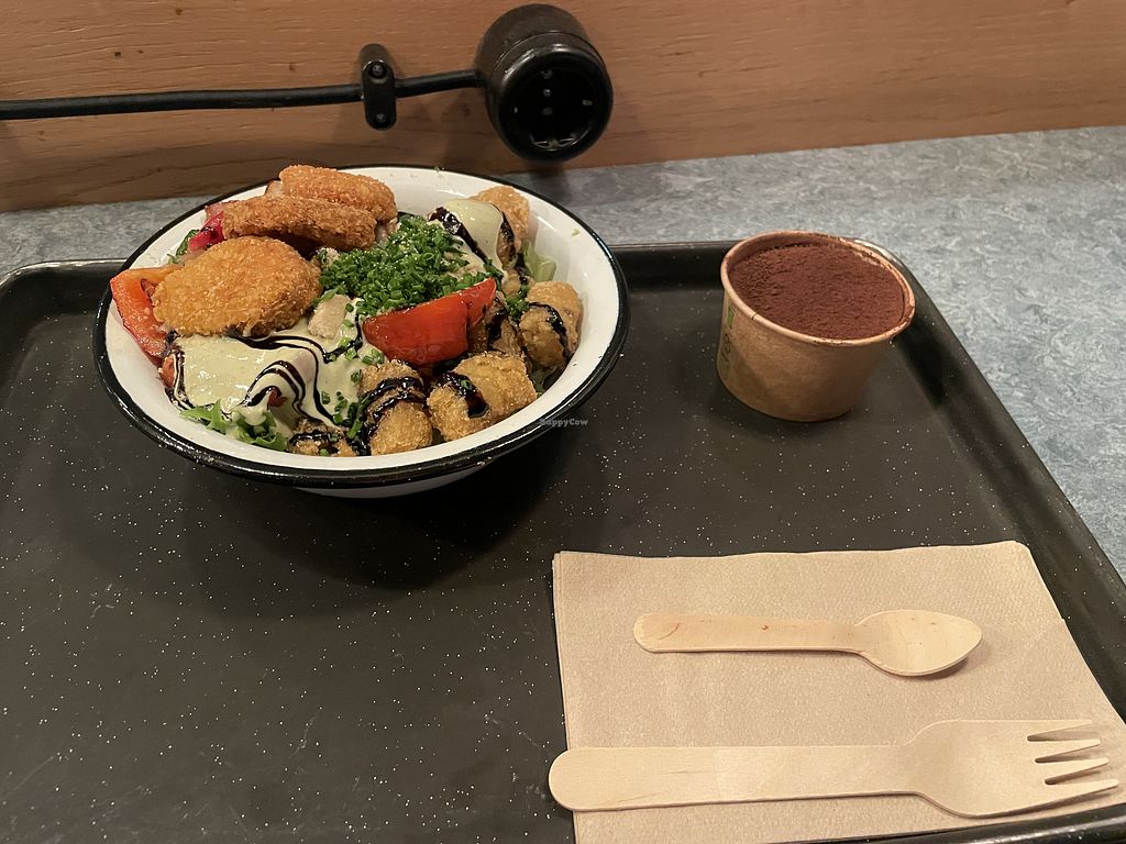 I love the idea that I can get vegan fast food like at Mc Donald‘s back in the day. I find the taste of the food not really interesting though. And it‘s slightly too expensive and they use too much single-use materials for convincing me to go there more often. The Tiramisu was good.😉