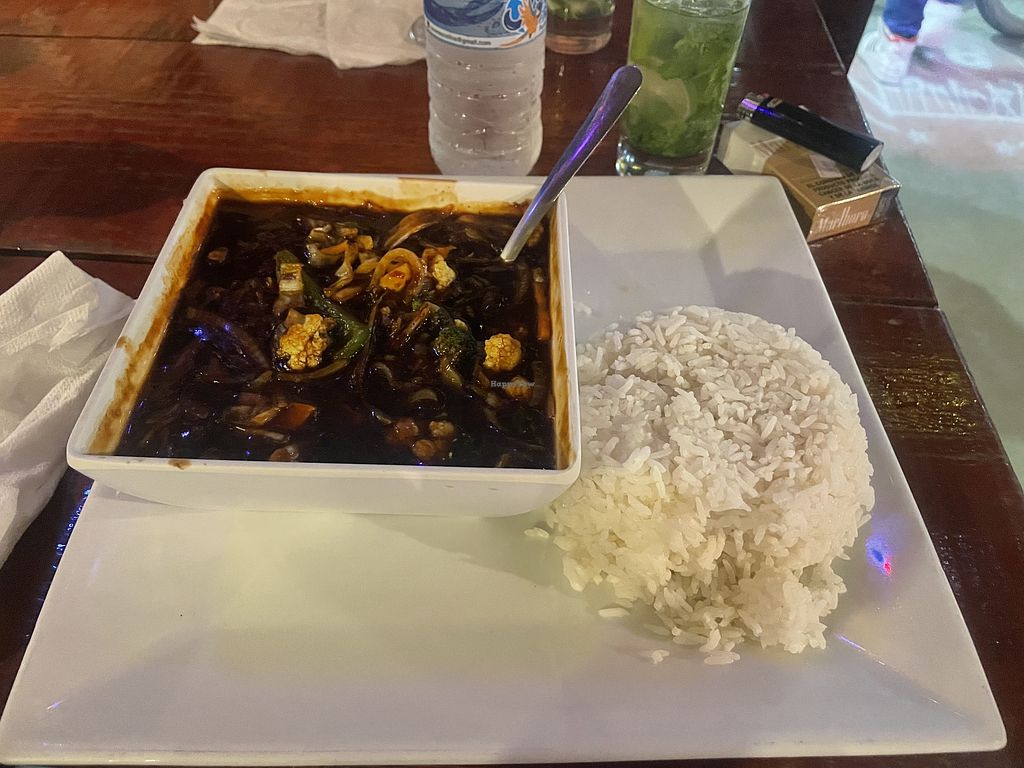 Read moreI had the veggies with tomato sauce with steamed veggies, fries and coconut rice.