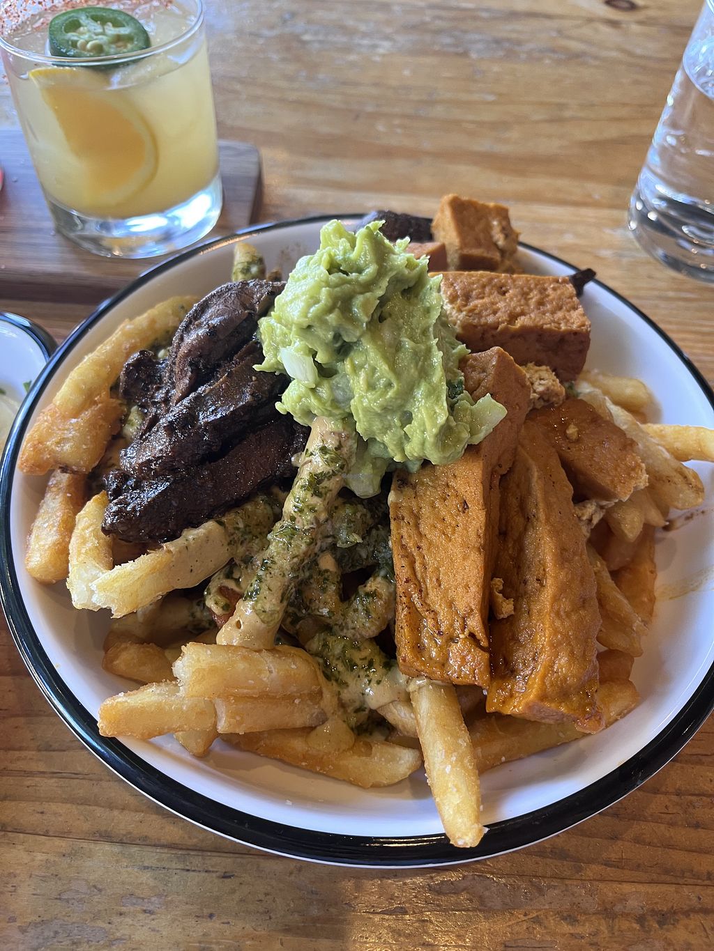We had just about everything on the vegan menu and loved everything. Their pickle juice for their tequila shots is homemade and some of the best pickle juice I’ve ever had. The campfire old fashion comes with a marshmallow on top which needs to be removed to make it vegan, but the cocktail was fantastic. The switchback fries were really good. We added tofu and mushrooms to them and our daughter loved them. The tofu and mushrooms are a little spicy so if you don’t like spicy be wary. They have one main cashew sauce that they use throughout the vegan menu, but it is a good sauce. The staff is really nice and know what to do with vegans.