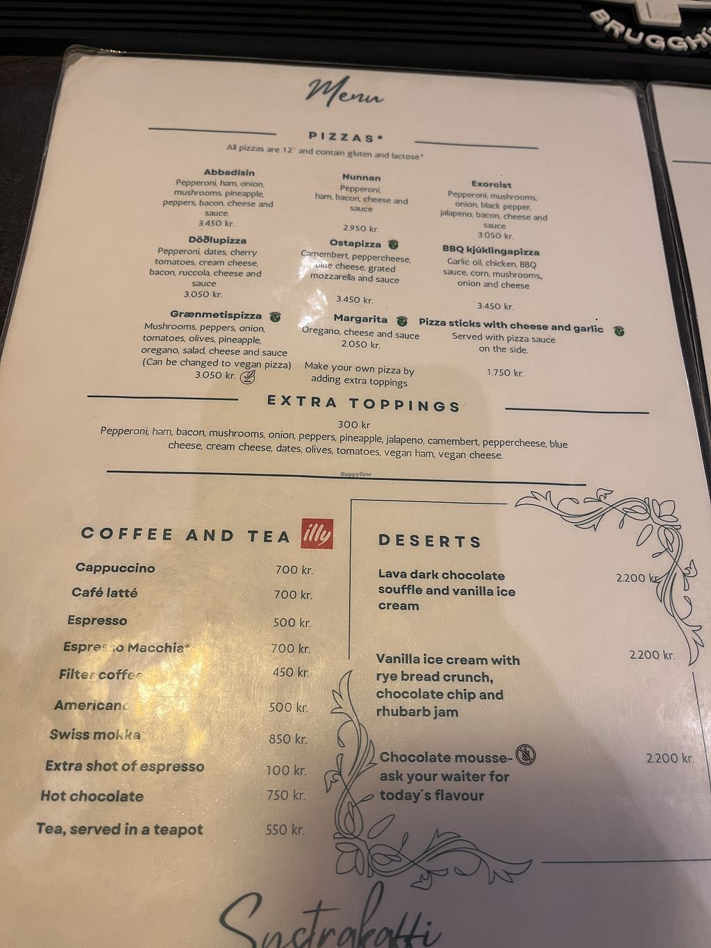 It's a nice place. Not that many vegan choices vegan pizzas like all the places in Iceland. No substitute meat but vegan cheese.