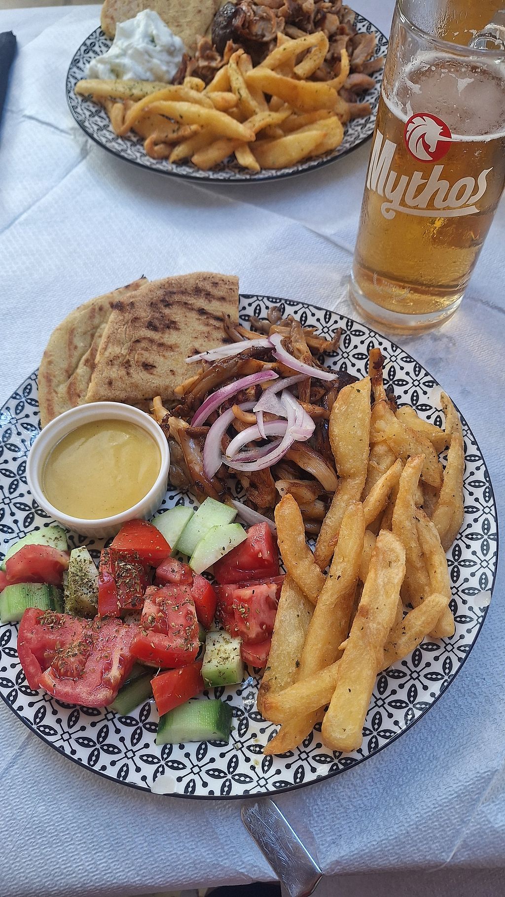Mushroom gyros and tomato fritters 💚❤️