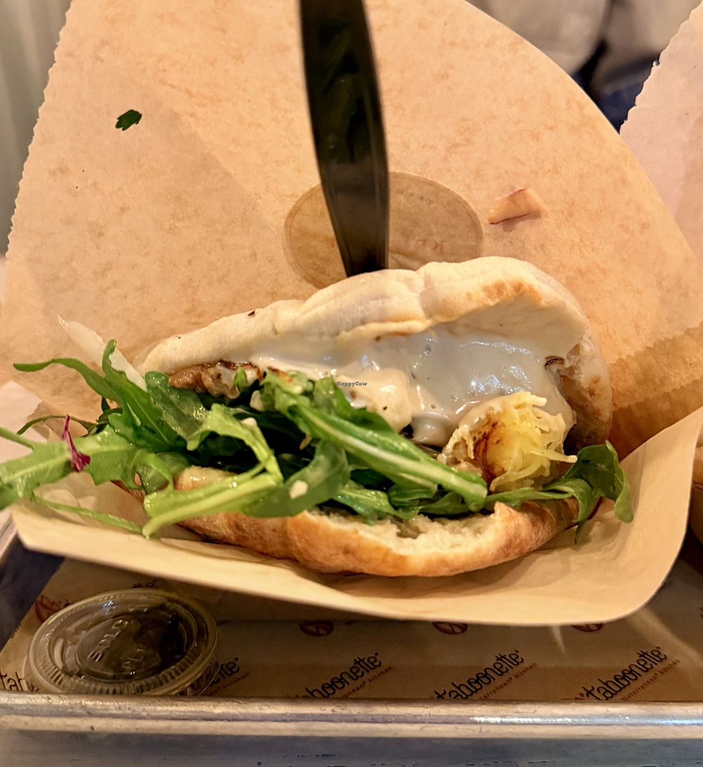 Ordered delivery from Taboonette—both the Eggplant Sabich Pita (vegetarian because of egg) and Sweet Potato Falafel Pan (replaced tzatziki with tahini sauce) did not disappoint!!