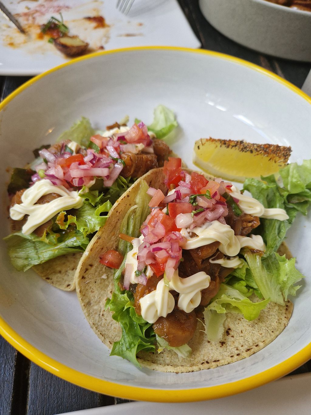 Read morePatatas Bravas done hasselback style, local seasonal celeriac and beetroot salad, vegan pulled jackfruit tacos, charred broccoli with vegan dressing.