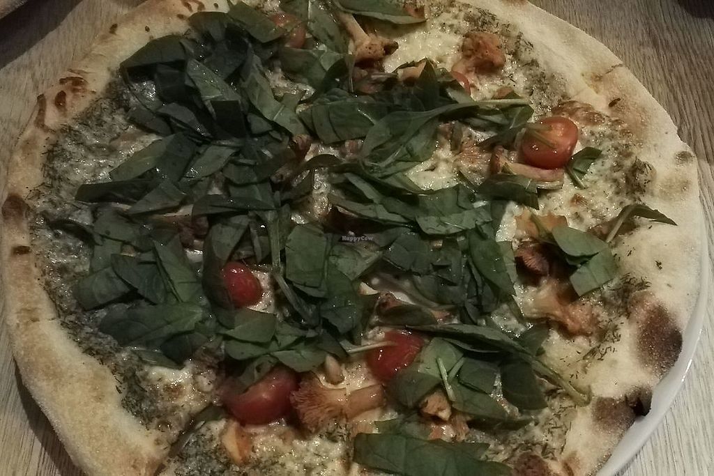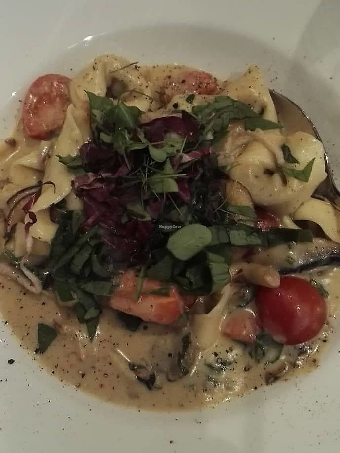 Serves meat, vegan options available. Offers vegan appetizer, mains, dessert, and wine. The in-house made pasta is vegan with option for vegetable sauce. Pizzas can be ordered with vegan cheese; has gluten-free crust. Confirmed closed, Apr 2018.