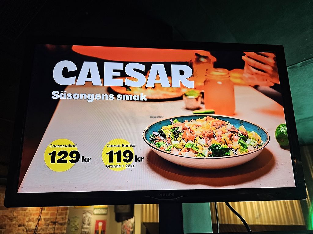 Serves meat, vegan options available. Small chain of restaurants making American Tex-Mex food like nachos, tacos, enchiladas, and quesadillas. Menu states that many items can be made vegan: choose beans, soy meat alternative, or vegme. The chili veggie (with soy mince) and the bean chili are both vegan and can be used in the dishes. Has vegan pulled pork, vegan cheese and cream. Please note that many businesses in Sweden are cashless. Open Mon-Tue 11:00-22:00, Wed-Thu 11:00-23:00, Fri-Sat 11:00-00:00, Sun 11:00-22:00.