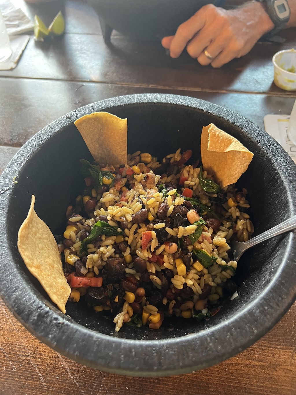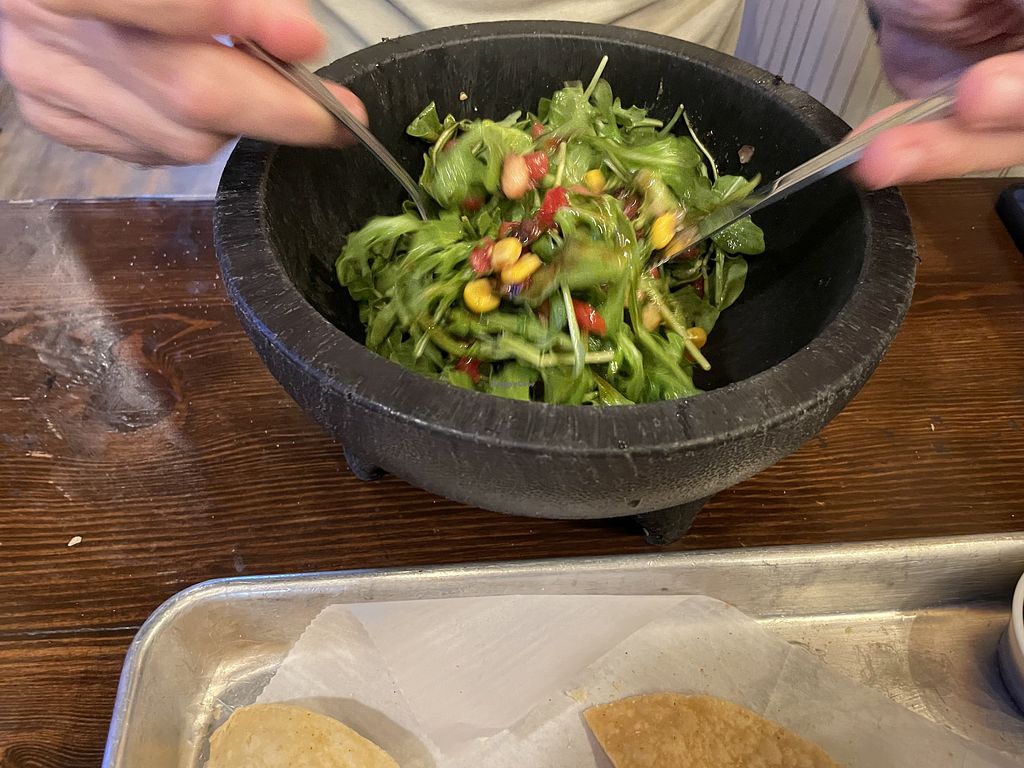 Fun place with vegan portobello tacos or bowls, salad, and guacamole. Server was knowledgeable about ingredients and vegan and was really friendly!